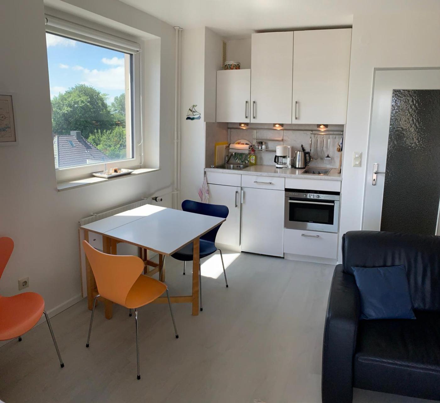 Diese Ferienwohnung ist versehen mit einem Kabel Flachbild-TV und einem Wohnzimmer. Die Küchenzeile ist ausgestattet mit einem Kühlschrank und einem Ofen, einer Mikrowelle sowie einer Kaffeemaschine und einem Wasserkocher.