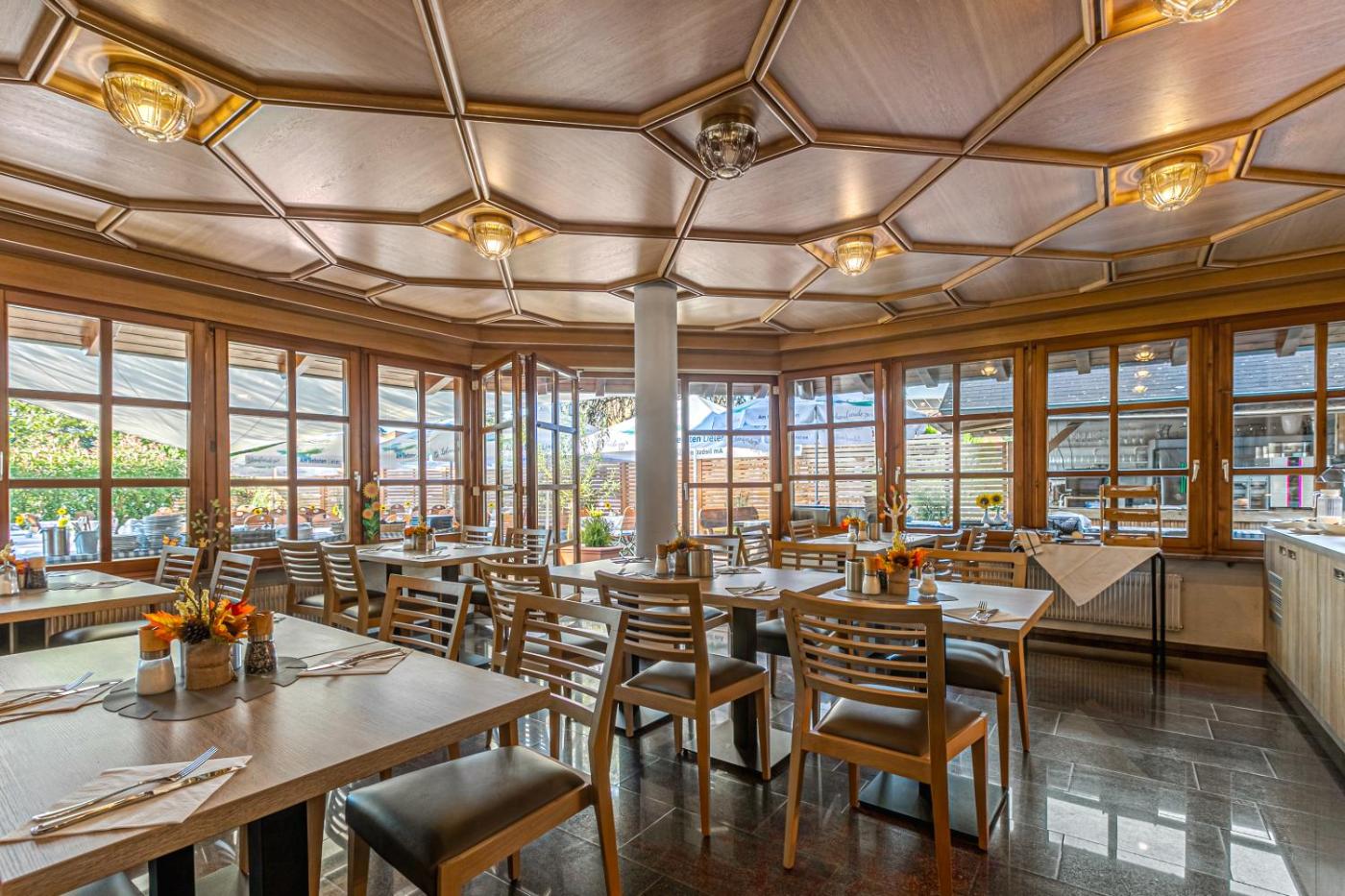 Frischer Fisch, Meeresfrüchte und saisonale Spezialitäten werden im Restaurant des Gasthauses serviert. Im Sommer können Sie auf der schattigen Gartenterrasse speisen.