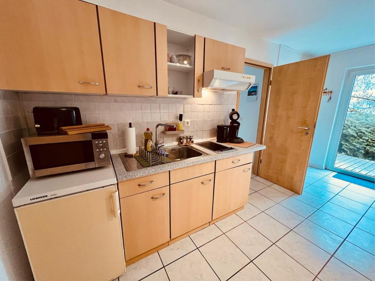 Diese Ferienwohnung hat eine Terrasse, 1 Schlafzimmer, ein Wohnzimmer und eine gut ausgestattete Küche mit einem Kühlschrank und einer Mikrowelle. In dieser Ferienwohnung werden Handtücher und Bettwäsche zur Verfügung gestellt.