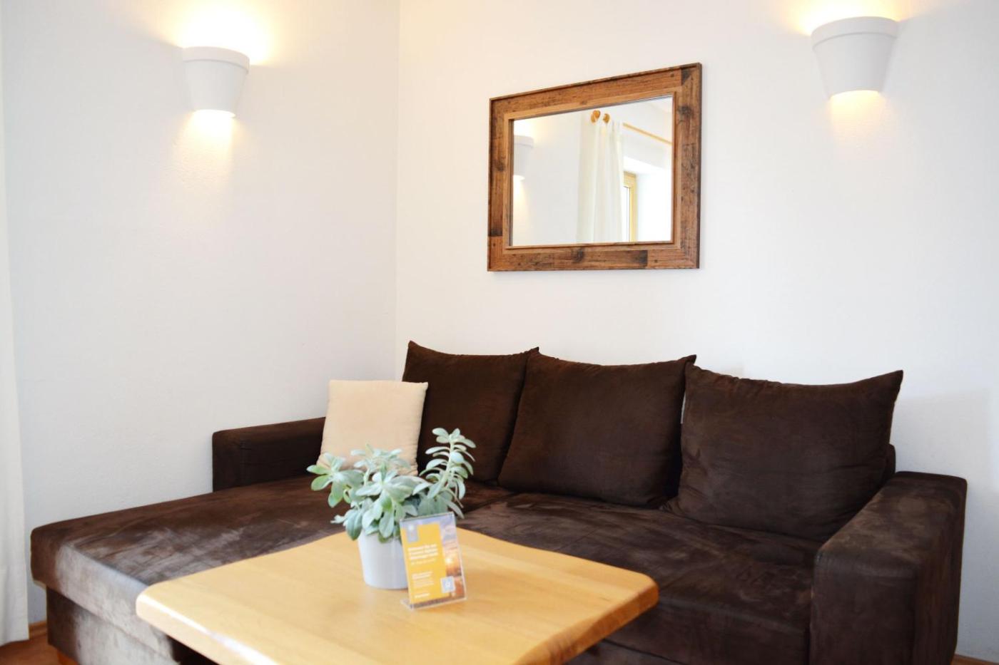 Apartment mit 1 Schlafzimmer und Terrasse. This apartment is comprised of 1 living room, 1 separate bedroom and 1 bathroom with a shower and a hairdryer. The well-fitted kitchen features a refrigerator, a dishwasher, an oven and a toaster. Featuring a terrace, this apartment also offers a washing machine, a coffee machine and a flat-screen TV. The unit offers 2 beds.