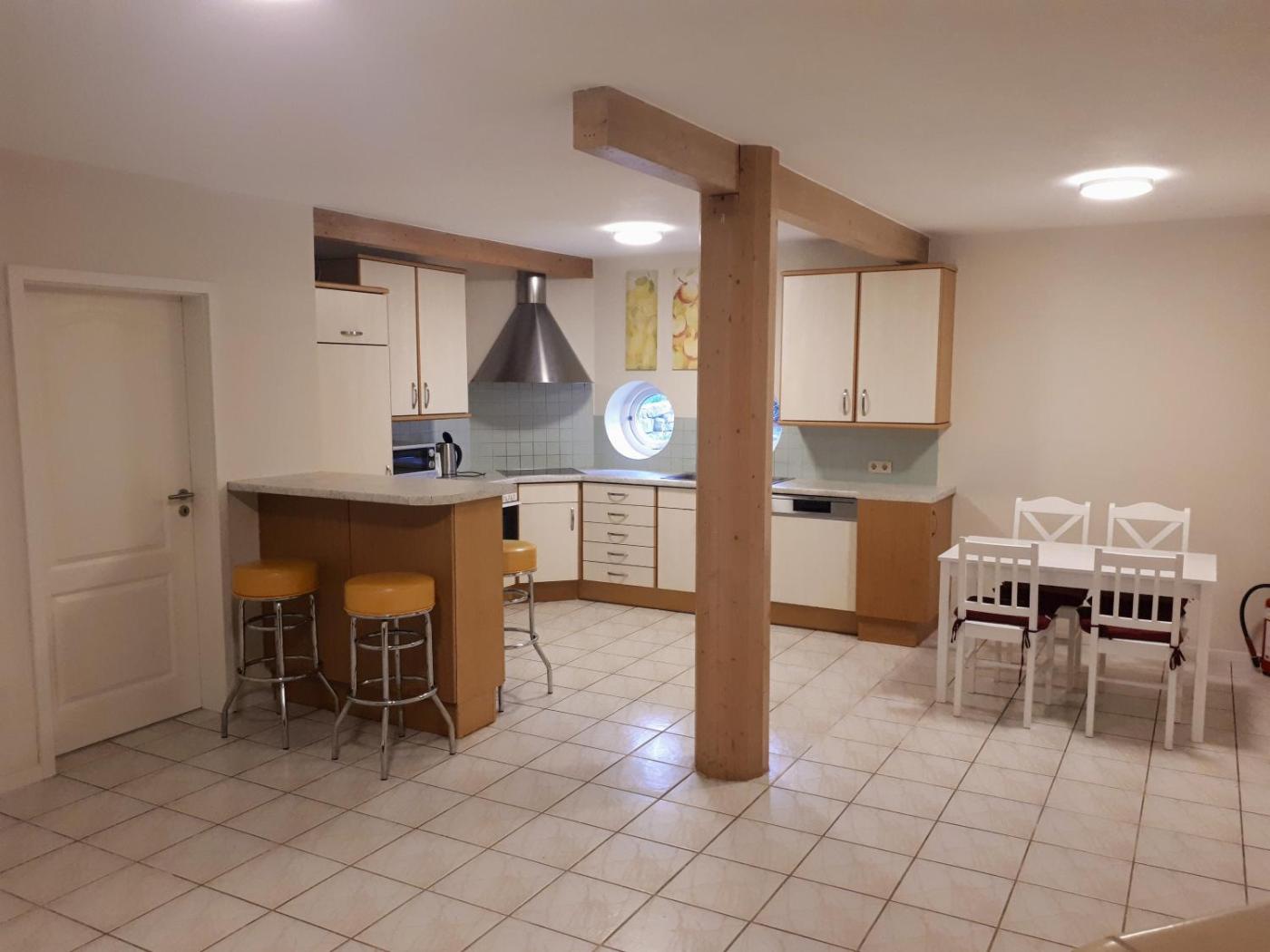 Deluxe Familiensuite. In the fully equipped kitchen, guests will find a stovetop, a refrigerator, a dishwasher and kitchenware. A seating area with a flat-screen TV, a desk and a private bathroom are available in this family room. The unit has 4 beds. ;