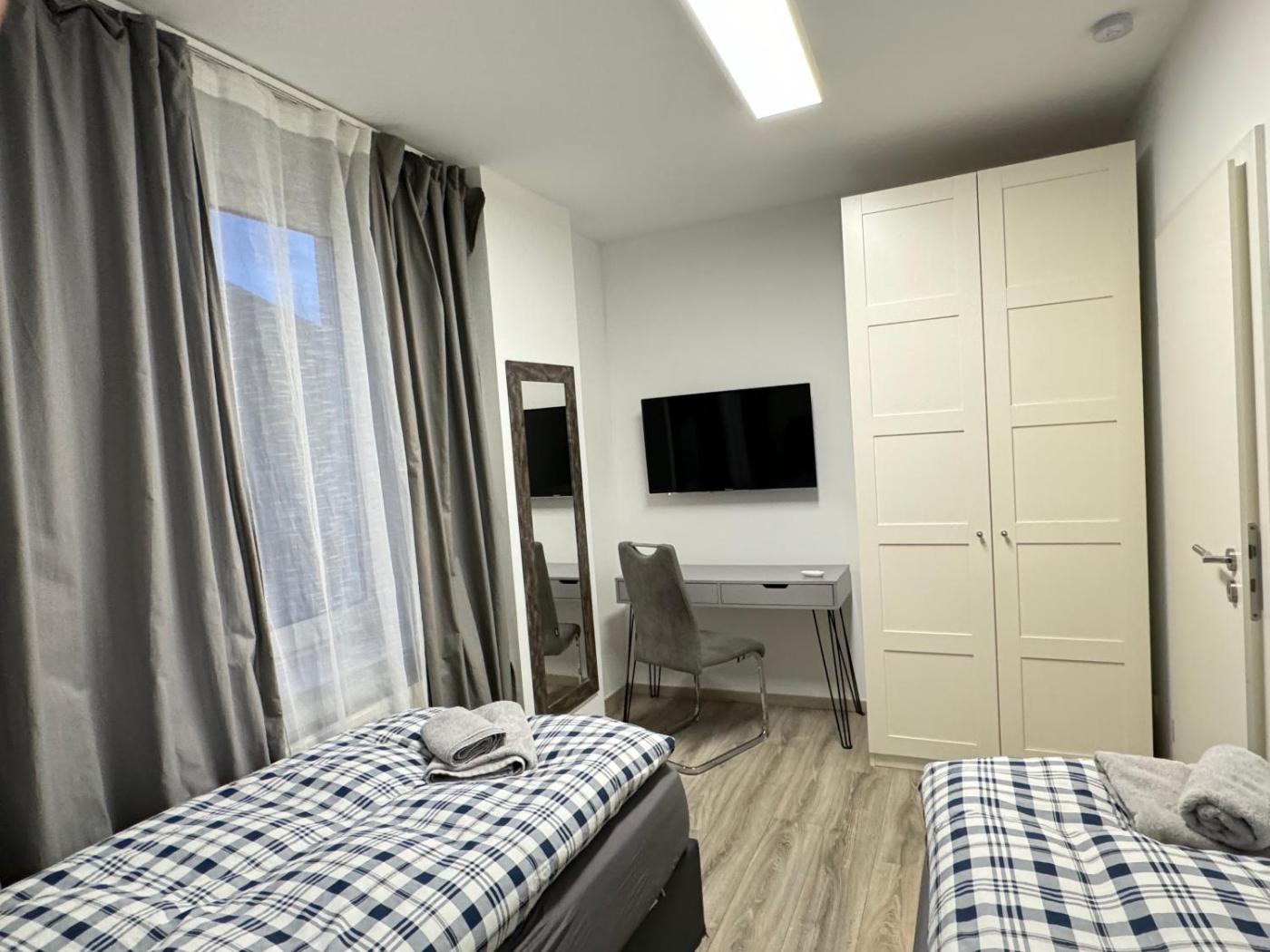 Apartment mit 2 Schlafzimmern. Diese Ferienwohnung bietet einen eigenen Eingang, 2 Schlafzimmer, einen Sitzbereich sowie 1 Bad mit einer Badewanne und einem Haartrockner. In der Küche erwarten Sie ein Kochfeld, ein Kühlschrank, ein Geschirrspüler und Küchenutensilien. Die Ferienwohnung umfasst zudem schallisolierte Wände, Tee- und Kaffeezubehör, einen Essbereich, einen Kleiderschrank und einen Flachbild-Kabel-TV. Die Wohneinheit ist mit 5 Betten ausgestattet. ;
