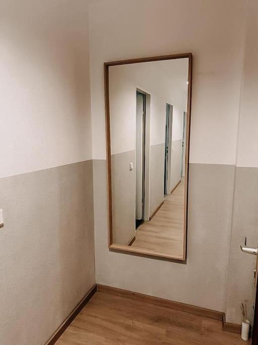 Die Unterkunft Wohnen im Ländereck Essen Mülheim Oberhausen BS1HL ist ausgestattet mit 2 Schlafzimmern, einer Küche mit einem Kühlschrank, einer Waschmaschine und 1 Badezimmer mit einem Haartrockner.