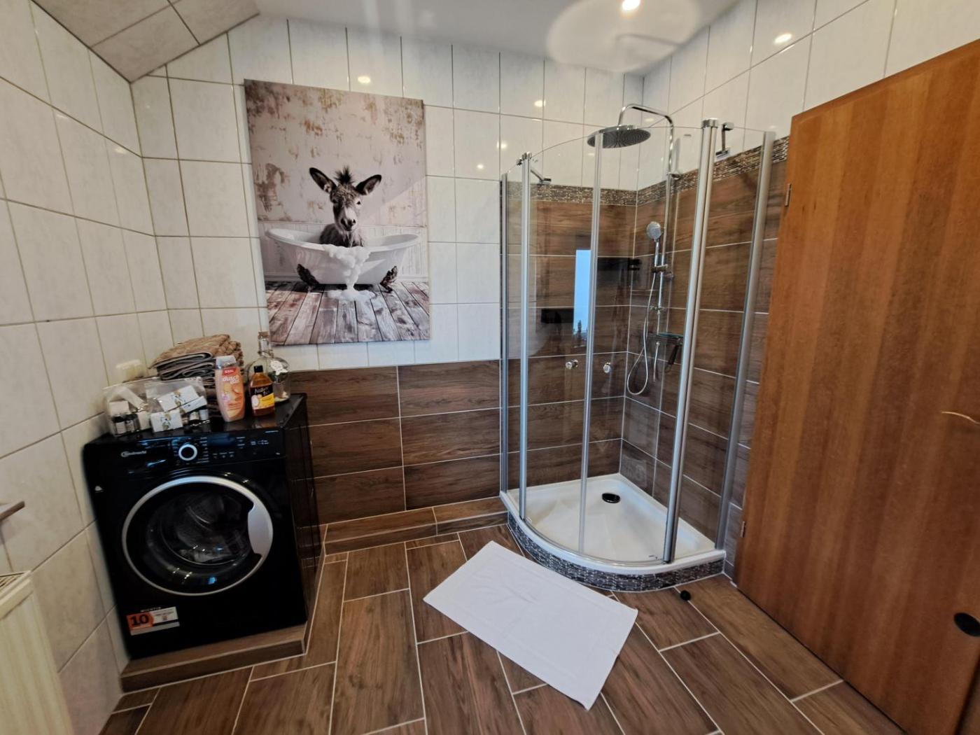 Ferienhaus mit Dusche. This holiday homes special feature is the fireplace. Guests will find a stovetop, a refrigerator, a dishwasher and kitchenware in the well-equipped kitchen. The holiday home also offers a barbecue. This holiday home features a washing machine, a private entrance, a TV and a terrace.