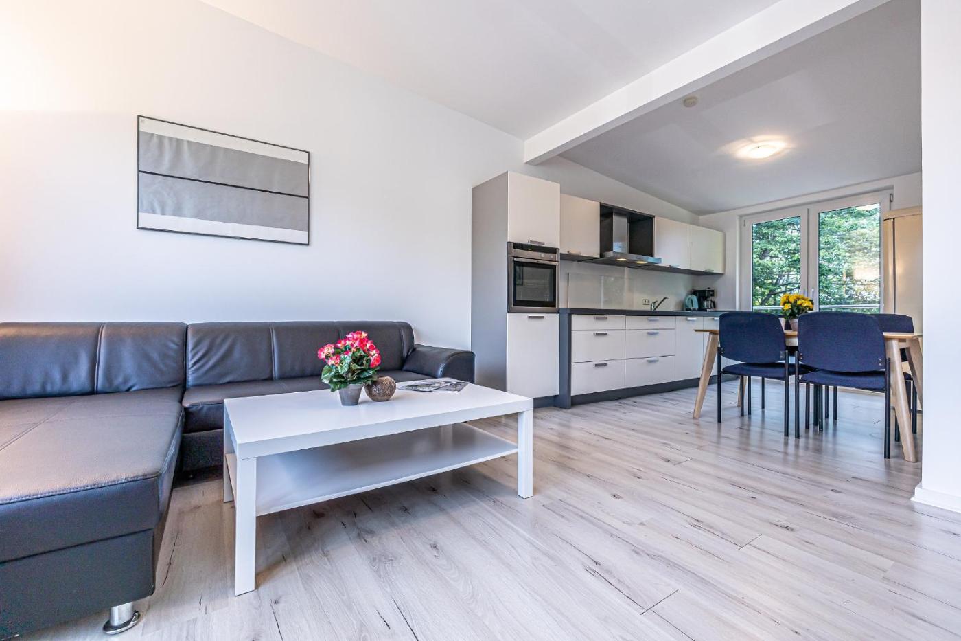 Apartment mit 3 Schlafzimmern. This spacious apartment consists of a kitchen, a seating area, 3 separate bedrooms and 1 bathroom with a bath and a shower. Guests can make meals in the kitchen that is equipped with a stovetop, a refrigerator, a dishwasher and kitchenware. The apartment provides a coffee machine, a wardrobe, a sofa, a flat-screen TV with cable channels, as well as garden views. The unit offers 4 beds.
