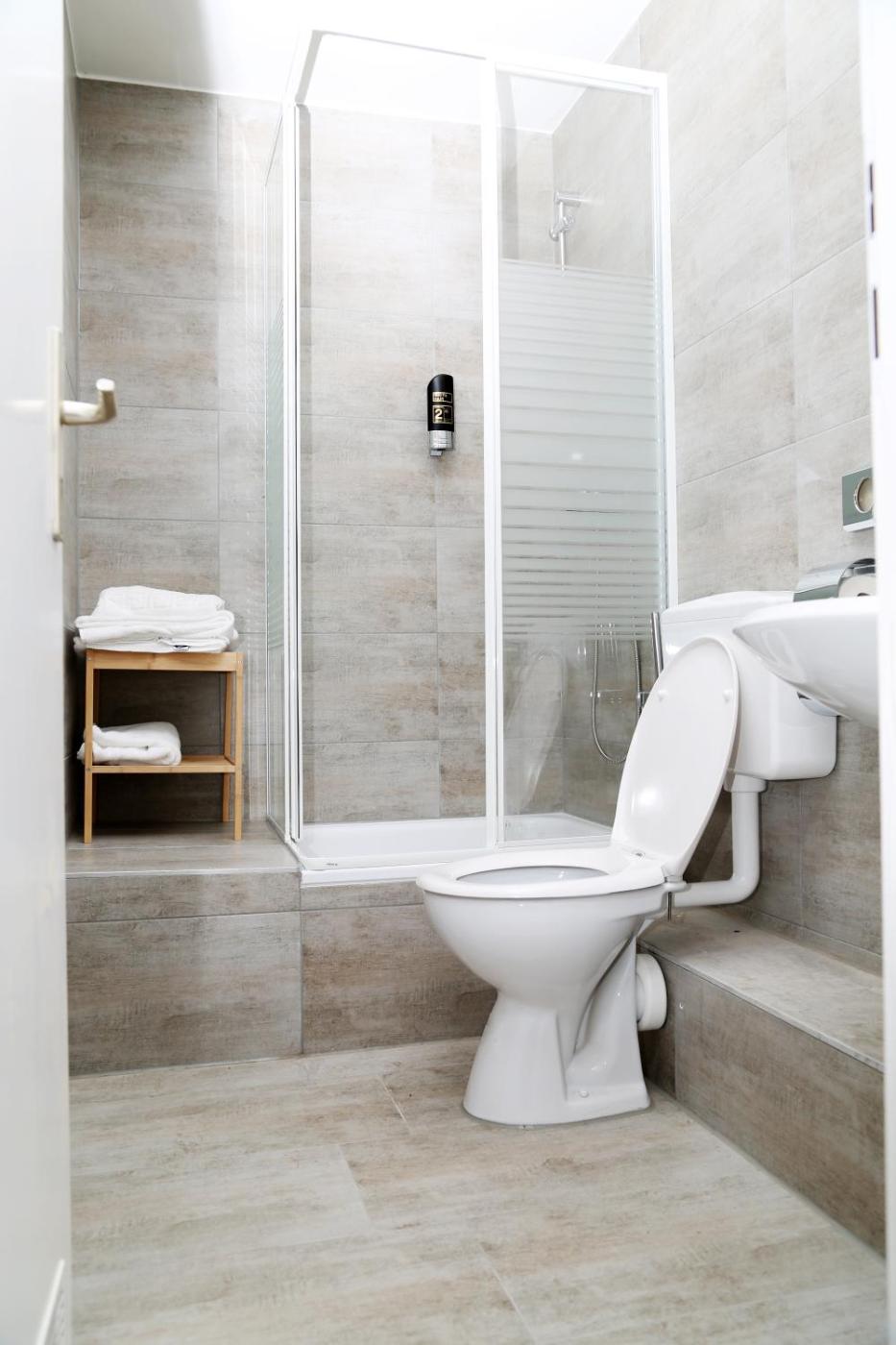 Zweibettzimmer mit Gemeinschaftsbad. Dieses Zweibettzimmer bietet ein Gemeinschaftsbad mit einer Dusche, einem Haartrockner und Hausschuhen. Kostenlose Pflegeprodukte sind ebenfalls vorhanden. Das Zweibettzimmer verfügt über einen Sitzbereich, einen Wasserkocher, Parkettboden, eine Heizung und einen Flachbild-Kabel-TV. Die Wohneinheit ist mit 2 Betten ausgestattet.