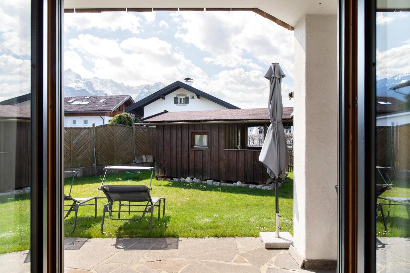 Die Gäste in der Unterkunft Alpblick Apartment - Dreitorspitze können in der Nähe Skifahren und Fahrradfahren, oder vor Ort den Garten nutzen.