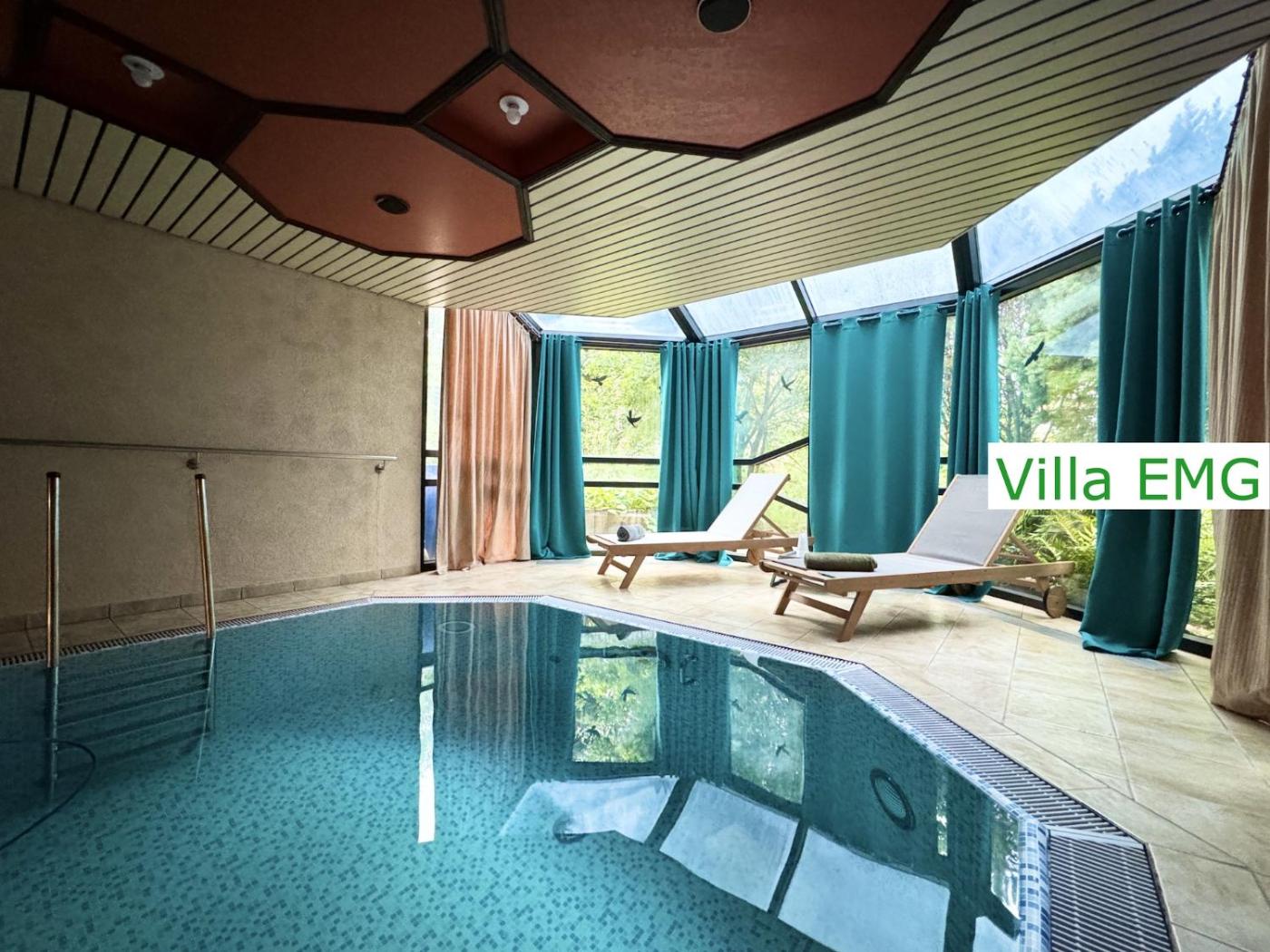 Die Gäste können in der Unterkunft Luxury Ferienhaus Spa Villa EMG Gernsbach nah Baden-Baden Rastatt Karlsruhe mit Pool, Sauna, Garten, Kamin bis 22 Personen den Innenpool nutzen.