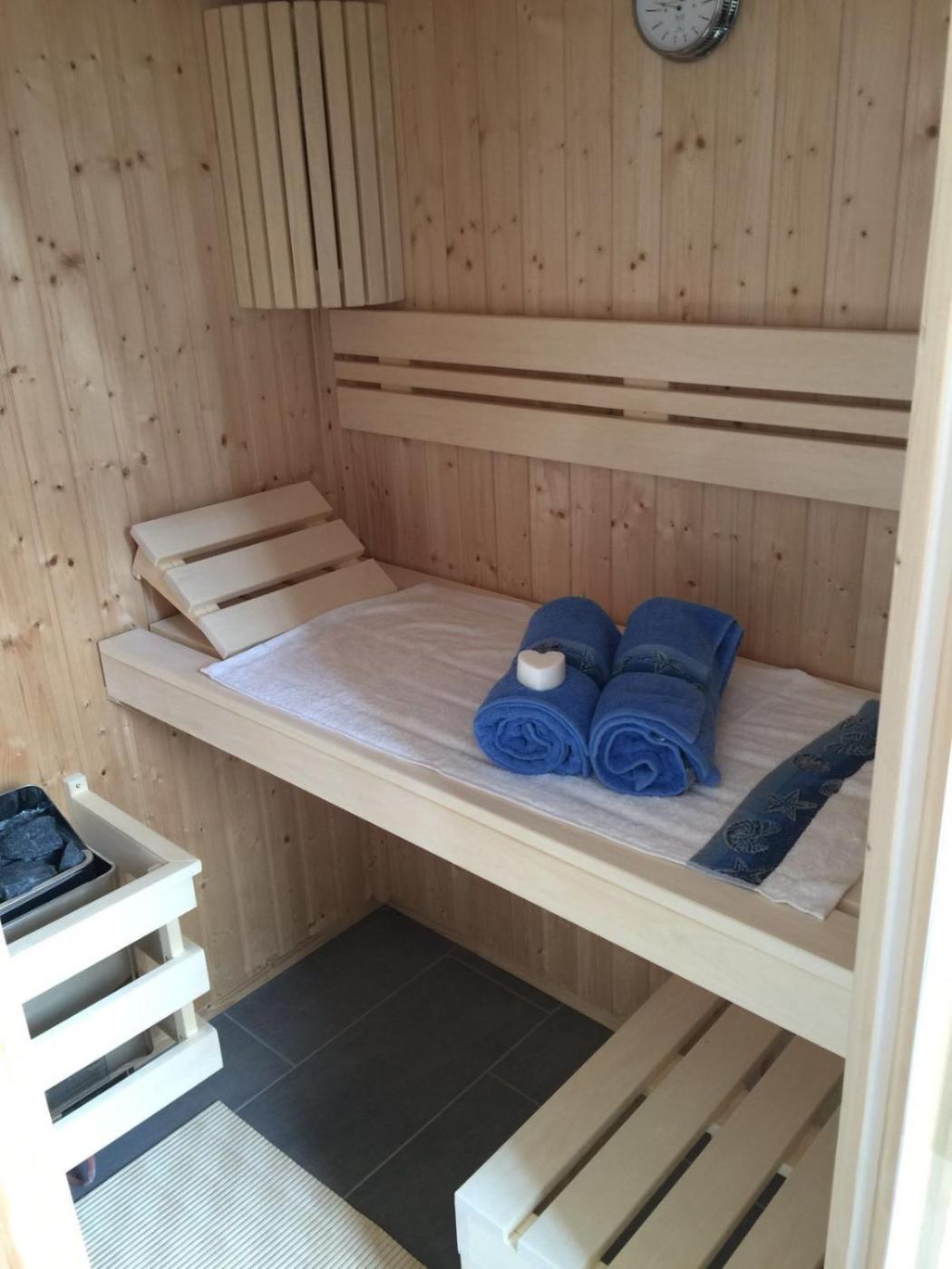 Ferienhaus. Dieses Ferienhaus bietet eine Sauna und einen Kamin. Des Weiteren umfasst das Ferienhaus einen eigenen Eingang, 1 Wohnzimmer, 3 separate Schlafzimmer sowie 2 Bäder mit einer ebenerdigen Dusche und einer Badewanne. In der gut ausgestatteten Küche stehen Ihnen ein Kochfeld, ein Kühlschrank, eine Geschirrspülmaschine und Küchenutensilien zur Verfügung. Das Ferienhaus verfügt auch über einen Grill. Freuen Sie sich auf eine Terrasse mit Gartenblick, eine Waschmaschine und einen Flachbild-Sat-TV. Die Wohneinheit ist mit 3 Betten ausgestattet.