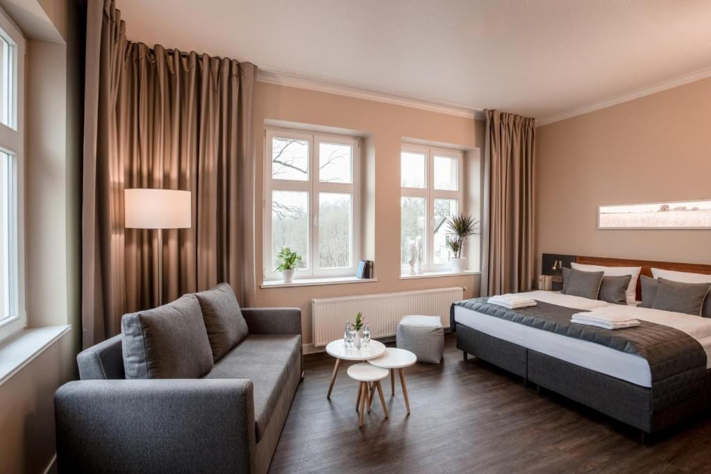 In der Unterkunft Gut Gnewikow sind die Zimmer ausgestattet mit einem Kleiderschrank, einem Flachbild-TV, einem eigenen Badezimmer, Bettwäsche und Handtüchern.