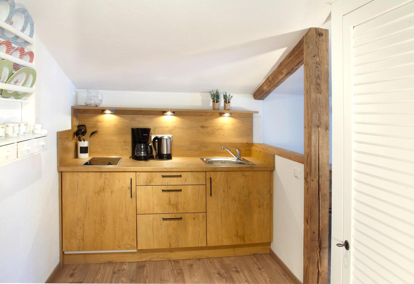 Apartment Wank. This apartment consists of a kitchenette, a seating area, 1 separate bedroom and 1 bathroom with a shower and a hairdryer. In the fully equipped kitchenette, guests will find a stovetop, a refrigerator, kitchenware and a toaster. The apartment provides a flat-screen TV with satellite channels, a coffee machine, a wardrobe, a high chair for children as well as a quiet street view. The unit offers 1 bed. ;