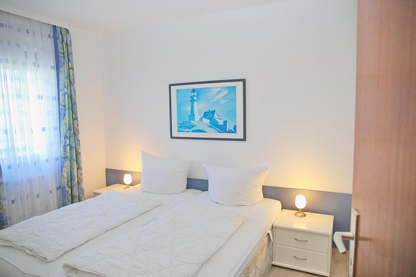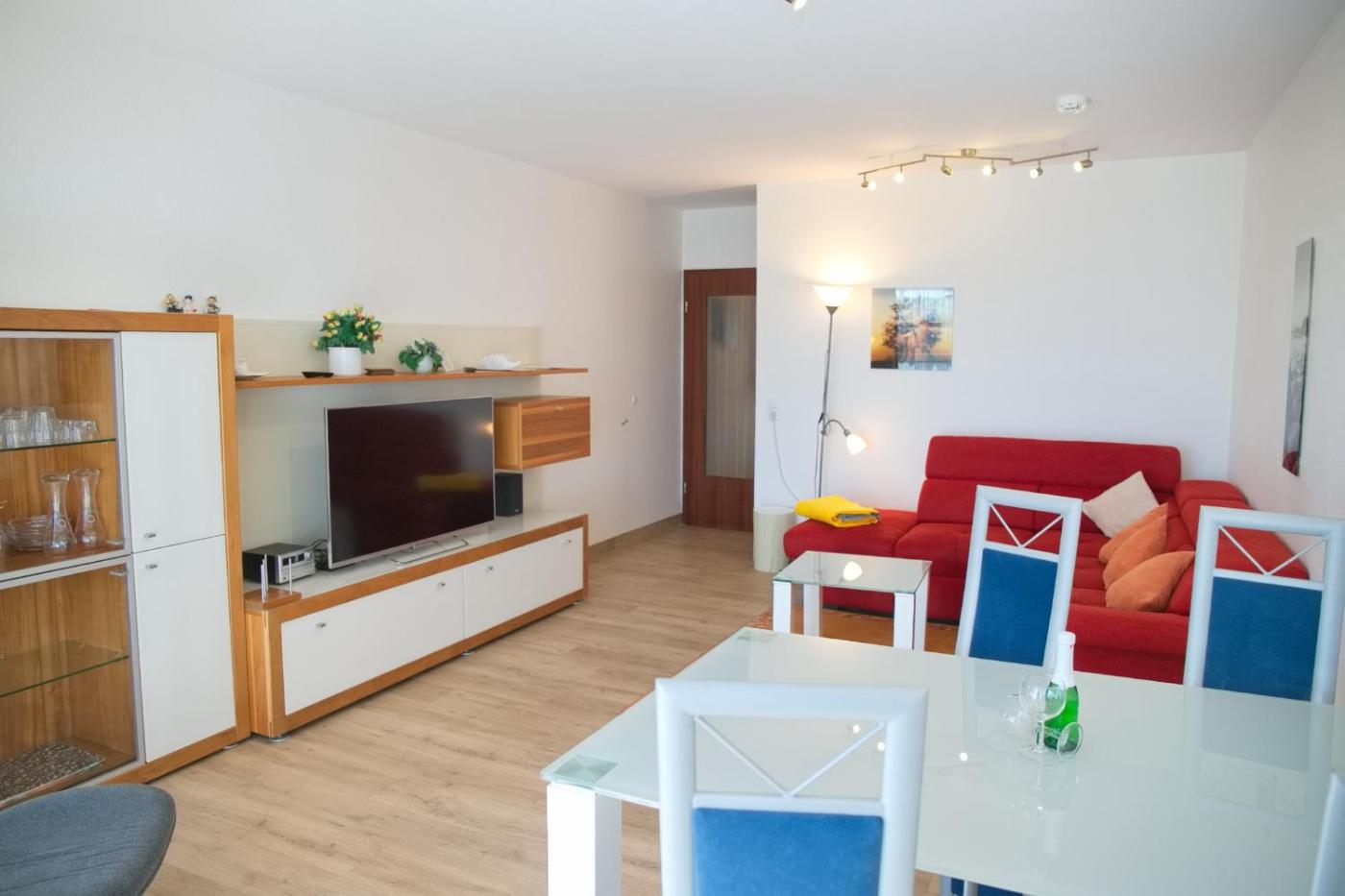 Apartment mit Seeblick. This apartment consists of 1 living room, 1 separate bedroom and 1 bathroom with a shower and a hairdryer. The fully equipped kitchen features a stovetop, a refrigerator, a dishwasher and kitchenware. Featuring a balcony with sea views, this apartment also provides a washing machine and a TV. The unit offers 2 beds.