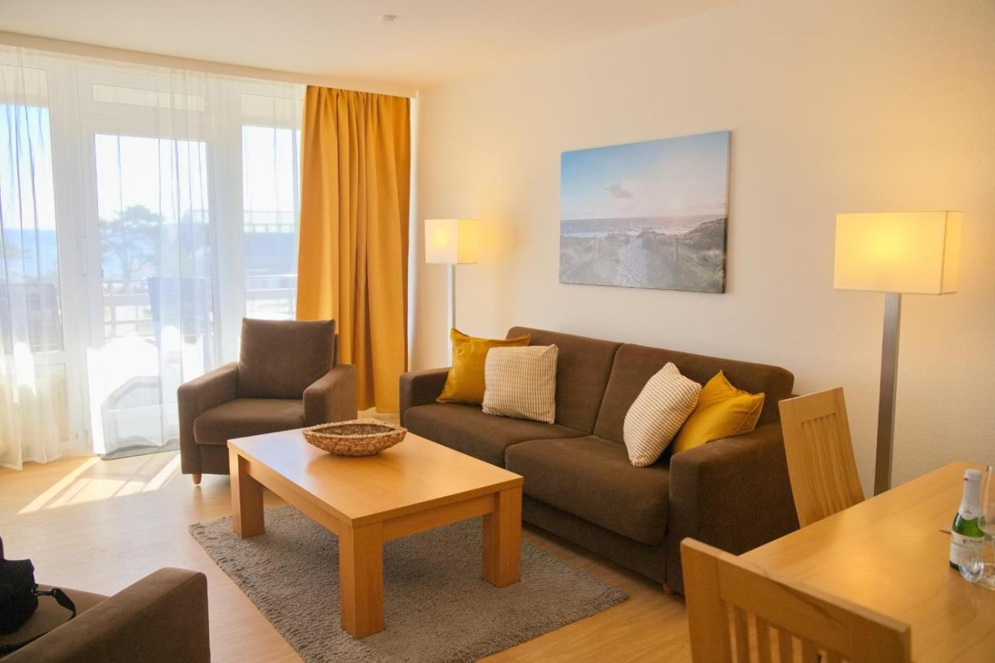 Apartment mit Seeblick. This apartment is comprised of 1 living room, 1 separate bedroom and 1 bathroom with a shower and a hairdryer. The well-equipped kitchen features a stovetop, a refrigerator, a dishwasher and kitchenware. Featuring a balcony with sea views, this apartment also offers a washing machine and a TV. The unit offers 2 beds.