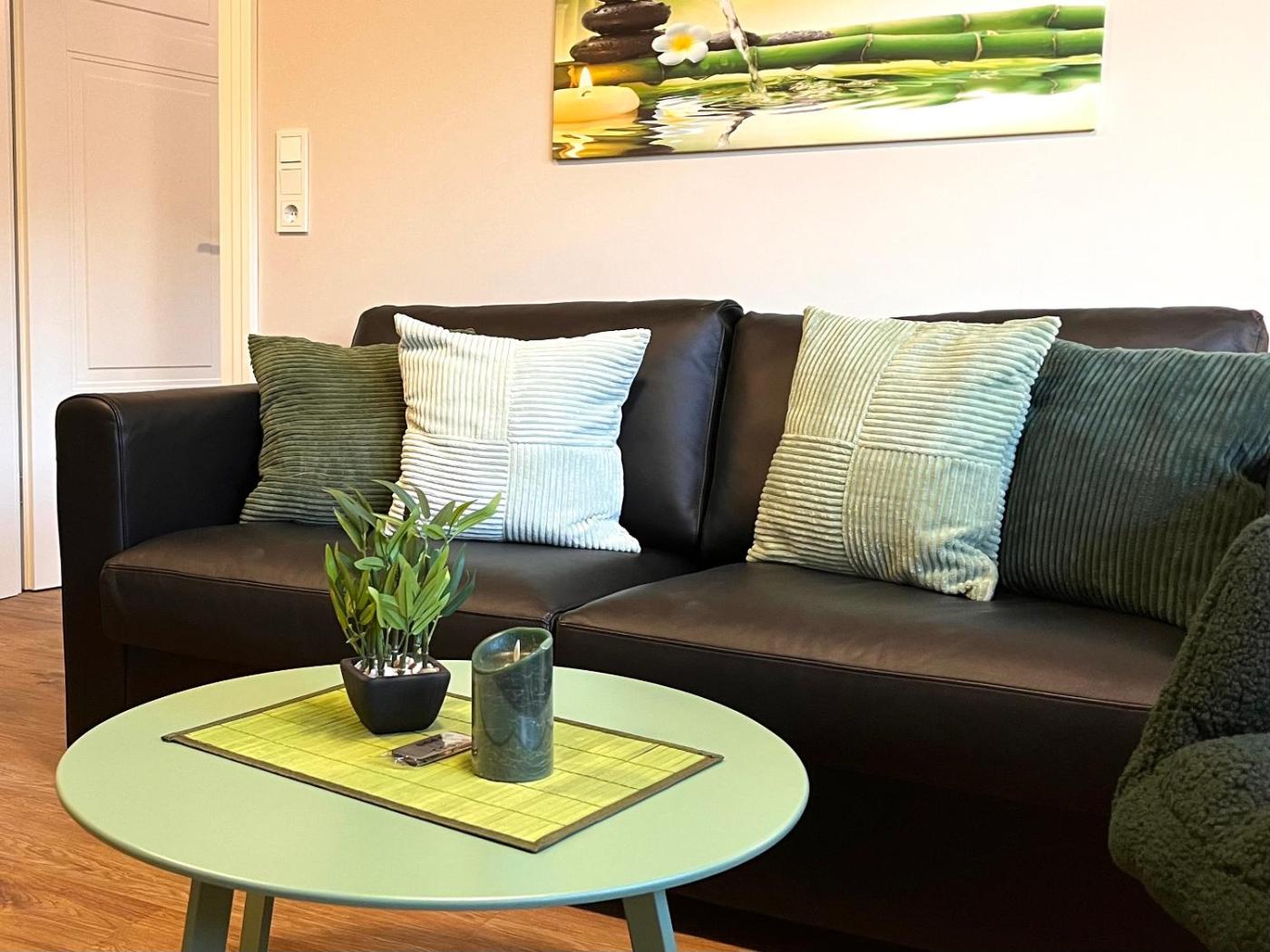 Apartment mit Balkon. This apartment is comprised of 1 living room, 1 separate bedroom and 1 bathroom with a shower and a hairdryer. Guests can make meals in the kitchen that is fitted with a stovetop, a refrigerator, kitchenware and a microwave. A seating area with a TV, a coffee machine and a balcony are featured in this apartment. The unit offers 2 beds.