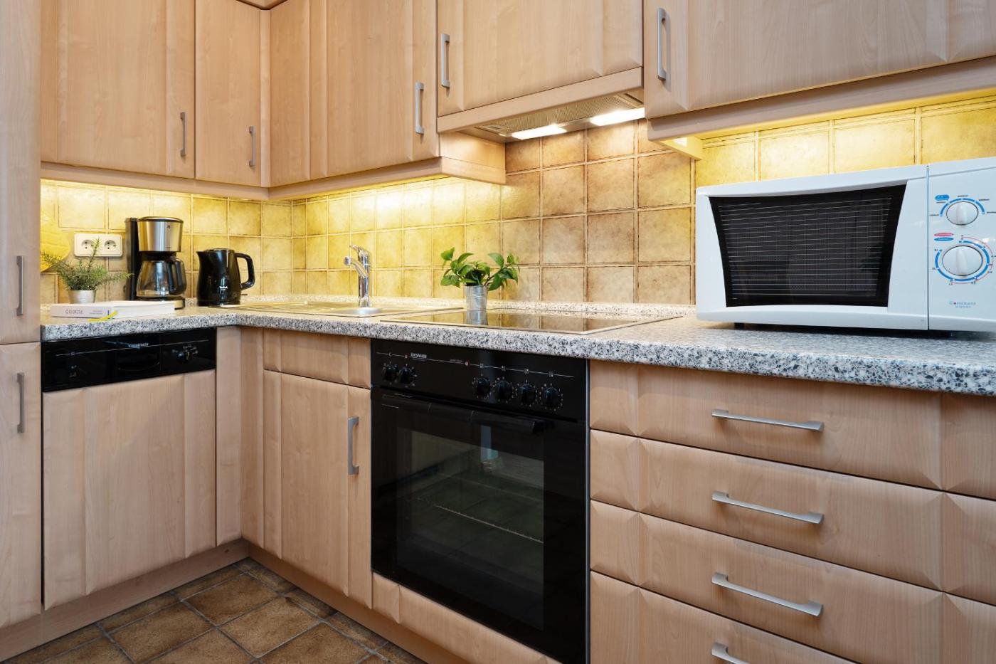 Apartment. This apartment is comprised of 1 bedroom, a kitchen and 1 bathroom with a shower and a hairdryer. Guests can make meals in the kitchen that is fitted with a stovetop, a refrigerator, a dishwasher and an oven. The apartment offers a washing machine, a coffee machine, tumble dryer, as well as a balcony. The unit offers 1 bed.