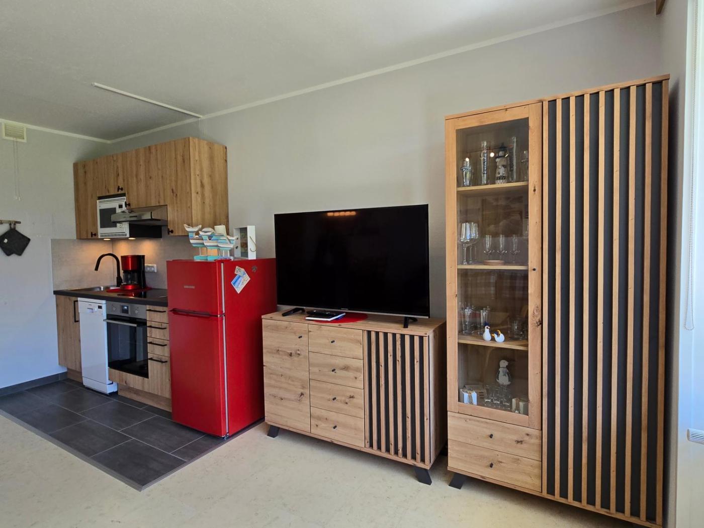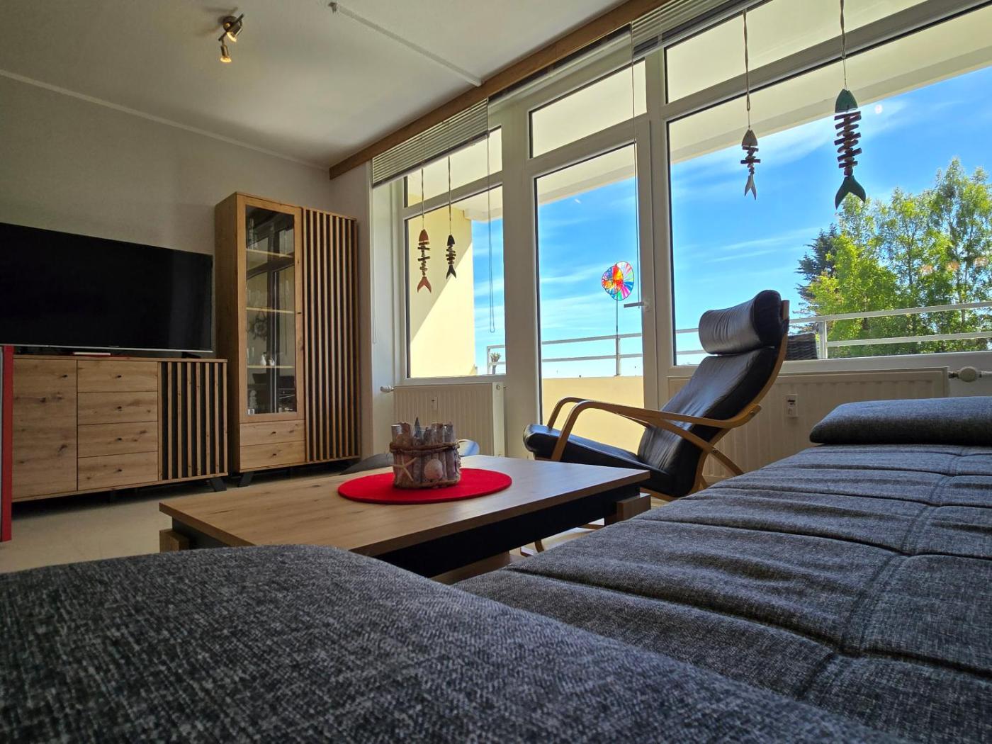 Apartment mit Meerblick. This apartment comes with 1 living room, 1 separate bedroom and 1 bathroom with a shower and a hairdryer. In the well-fitted kitchen, guests will find a stovetop, a refrigerator, a dishwasher and kitchenware. Boasting a balcony with sea views, this apartment also features a washing machine and a TV. The unit has 2 beds.