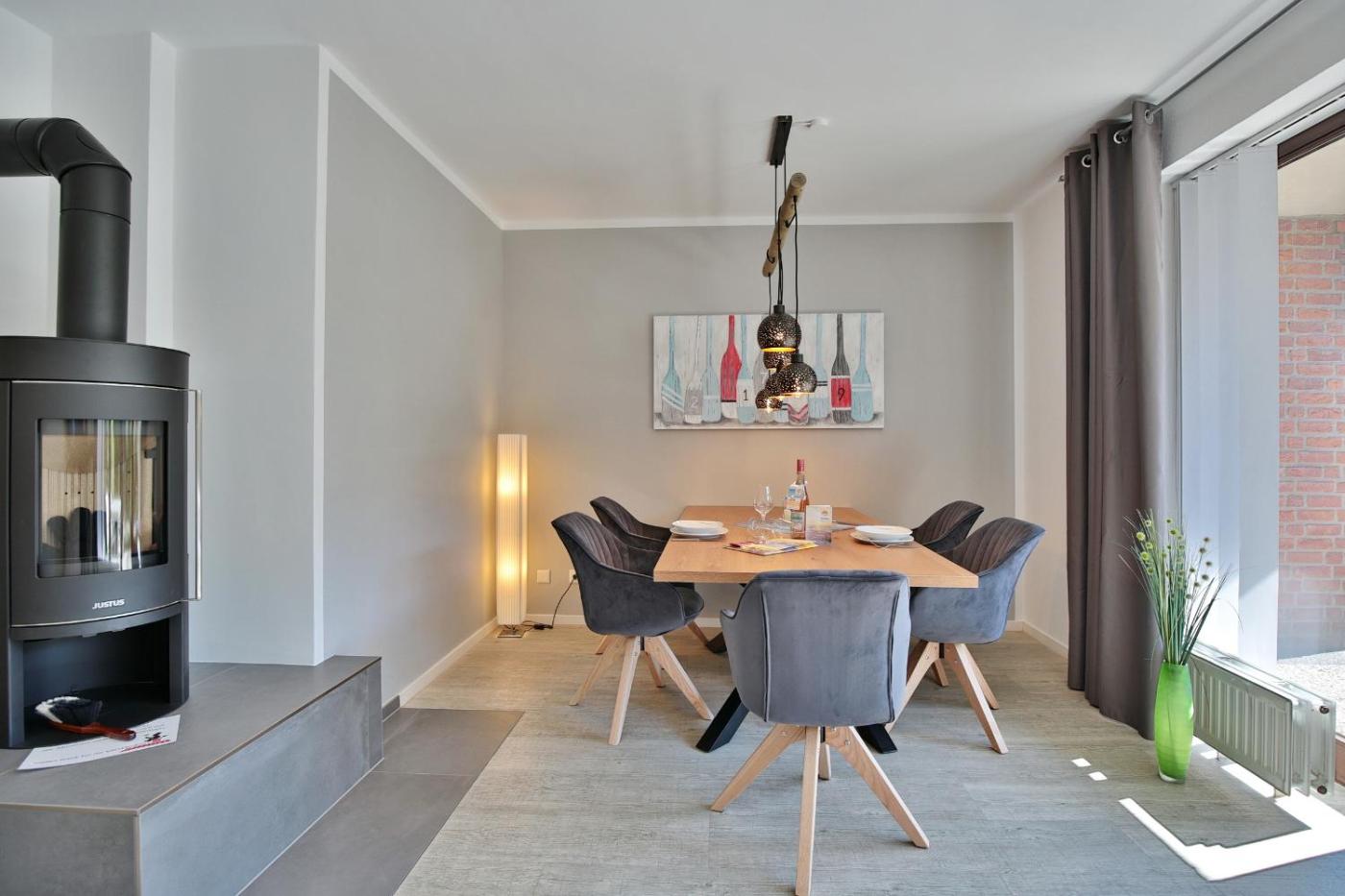 Apartment mit Terrasse. Guests will have a special experience as this apartment provides a fireplace. Featuring 2 bedrooms and 1 bathroom with a shower, this spacious apartment offers a well-fitted kitchen and a terrace. The well-fitted kitchen features a stovetop, a refrigerator, a dishwasher and an oven. Boasting an outdoor dining area, this apartment also offers a coffee machine, a wardrobe and a TV. The unit has 2 beds.