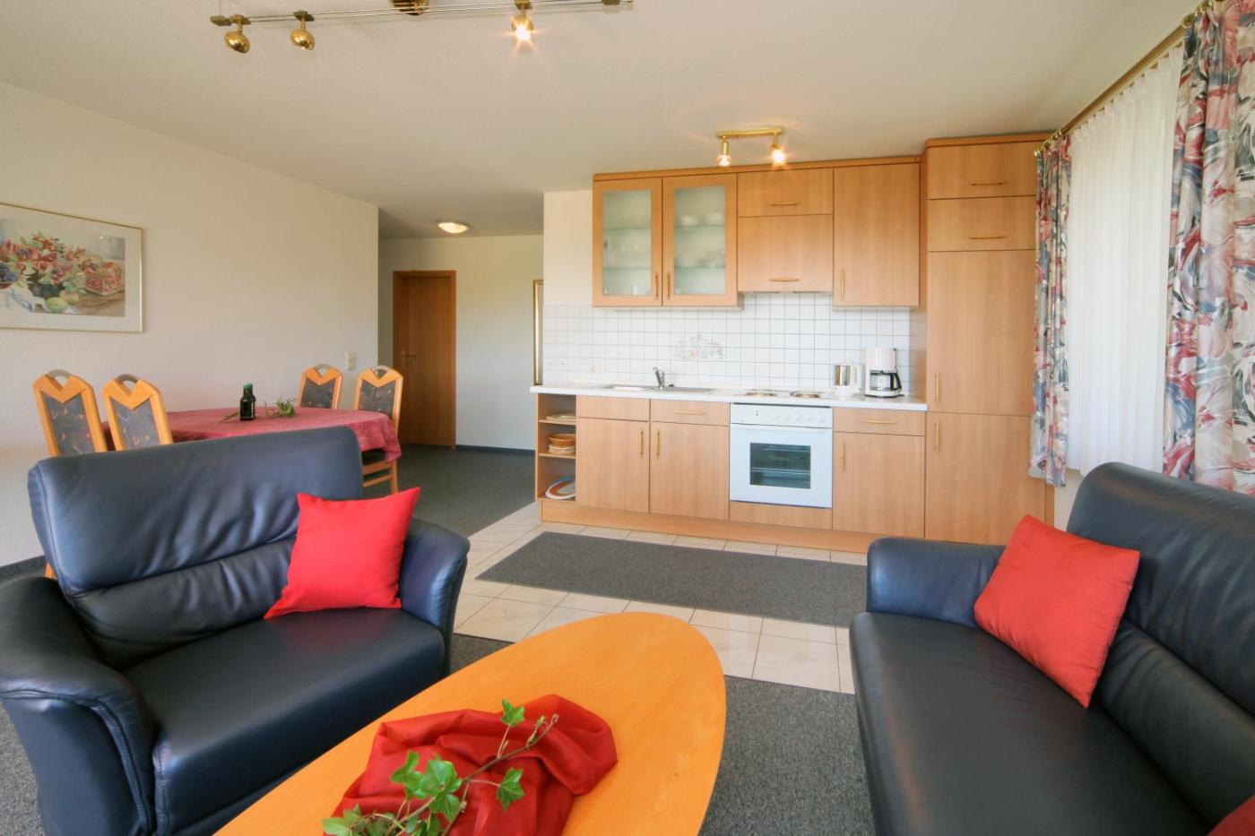 Apartment mit 2 Schlafzimmern. Die Unterkunft verfügt über einen Flachbild-Sat-TV, eine Stereoanlage mit CD-MP3-Player, ein großes Wohnzimmer mit einem Sofa und einem Sessel sowie eine Küchenzeile mit einem Essbereich.