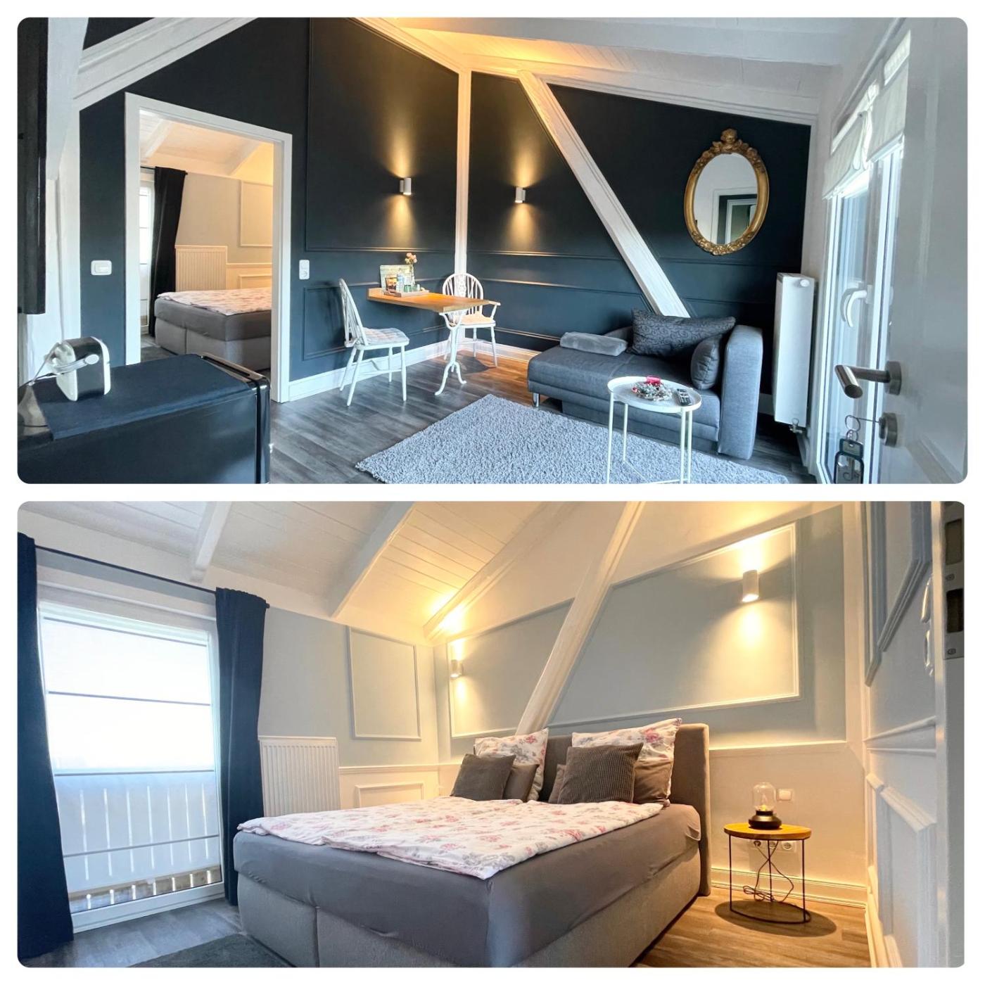 Suite mit Balkon. Boasting a private entrance, this suite comes with 1 living room, 1 separate bedroom and 1 bathroom with a shower and a hairdryer. Meals can be prepared in the kitchen, which features a stovetop, a refrigerator, a dishwasher and kitchenware. Featuring a balcony with garden views, this suite also features a tea and coffee maker and a flat-screen TV with streaming services. The unit has 2 beds. ;