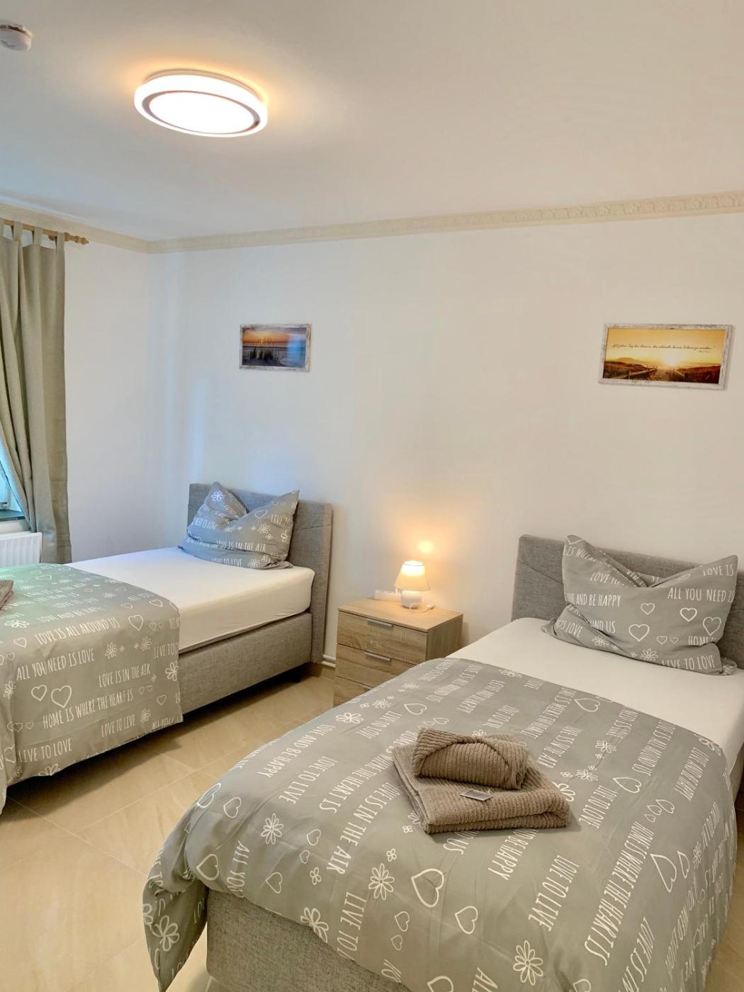 Familienapartment mit 2 Schlafzimmern und Aussicht. This spacious apartment is comprised of 1 living room, 2 separate bedrooms and 1 bathroom with a shower and free toiletries. In the kitchen, guests will find a stovetop, a refrigerator, a dishwasher and kitchenware. Featuring a terrace with garden views, this apartment also offers a washing machine and a flat-screen TV with streaming services. The unit offers 5 beds.