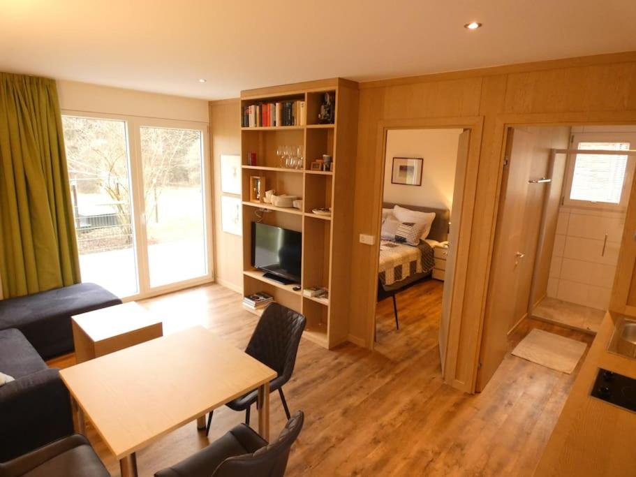 Dieses Ferienhaus ist eingerichtet mit 1 Schlafzimmer, einer Küchenzeile mit einem Kühlschrank und einer Herdplatte, einem Flachbild-TV, einem Sitzbereich und 1 Badezimmer, ausgestattet mit einer Dusche. In diesem Ferienhaus werden Handtücher und Bettwäsche angeboten.