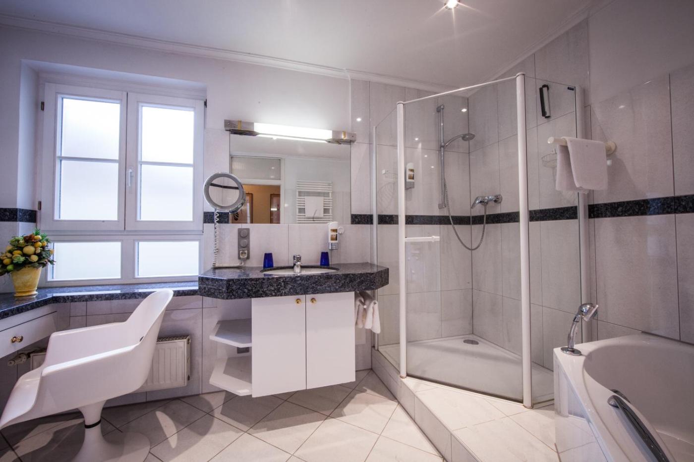 Comfort Doppelzimmer. Dieses im traditionellen deutschen Stil eingerichtete Zimmer verfügt über ein Doppelbett (getrennte Matratzen), eine Sitzecke und ein Badezimmer mit Dusche. Einige verfügen über eine Terrasse und andere über einen Blick auf die Steingasse. ;