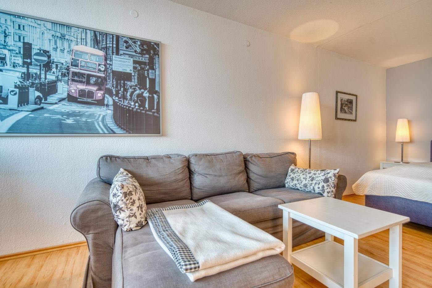Diese Ferienwohnung mit 1 Schlafzimmer ist ausgestattet mit einem Wohnzimmer mit einem TV, einer voll ausgestatteten Küchenzeile mit einem Kühlschrank sowie 1 Badezimmer.