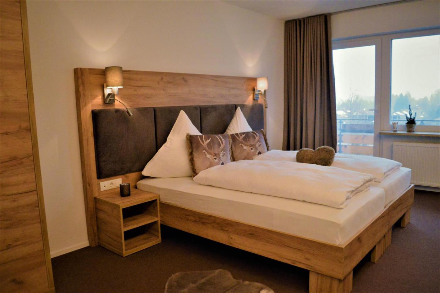 Deluxe Doppelzimmer mit Bergblick und Balkon. Dieses Doppelzimmer bietet einen Flachbild-Sat-TV, ein eigenes Bad sowie einen Balkon mit Gartenblick. In der Wohneinheit befindet sich 1 Bett. ;