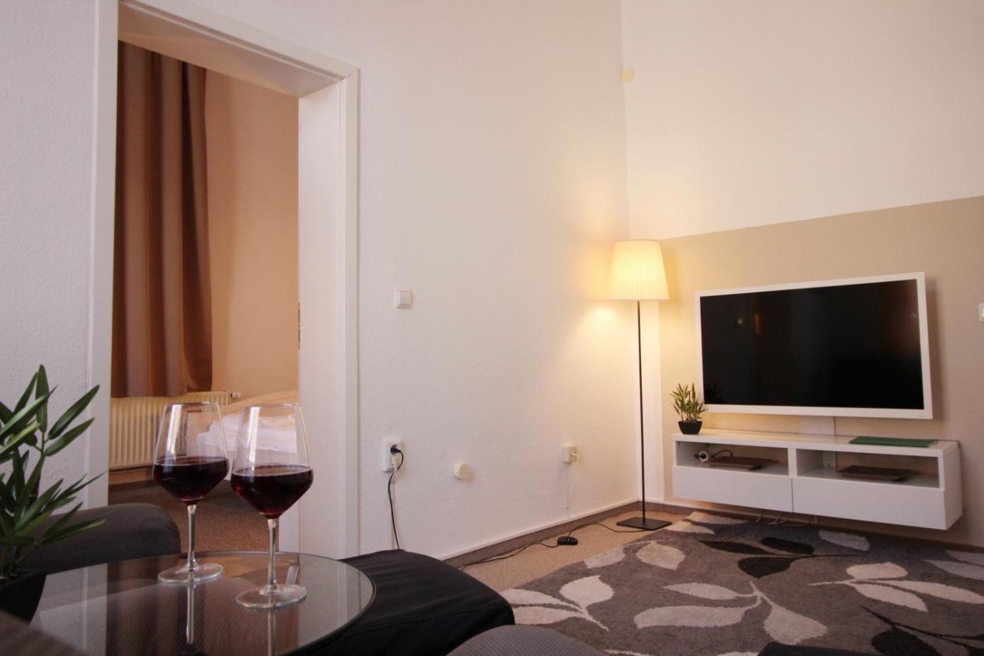 Apartment mit 1 Schlafzimmer. This air-conditioned apartment features 1 living room, 1 separate bedroom and 1 bathroom with a hairdryer. Meals can be prepared in the well-fitted kitchenette, which has a stovetop, a refrigerator, kitchenware and a toaster. The apartment features a washing machine, a coffee machine, a seating area, a dining area and a flat-screen TV. The unit has 1 bed. ;