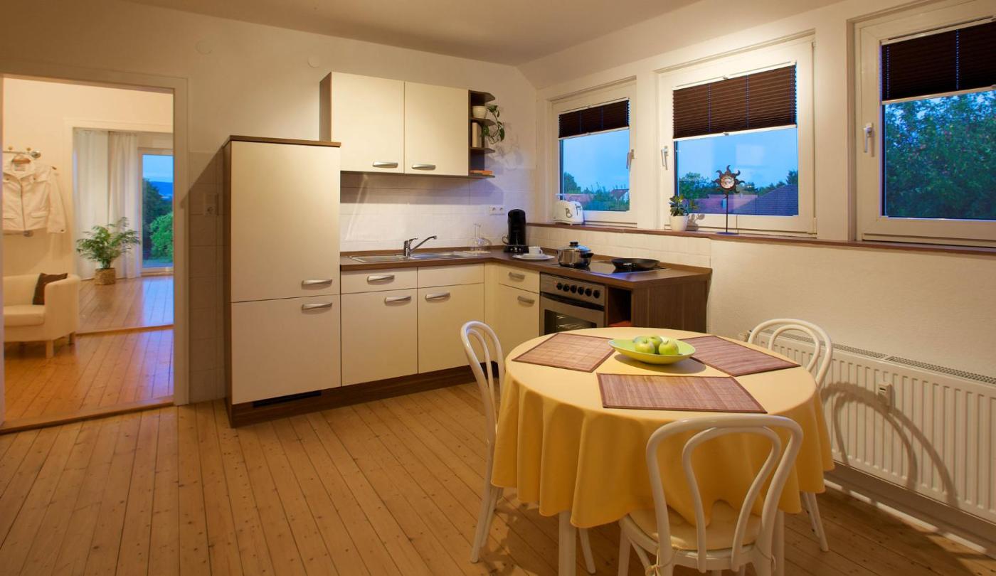 Apartment mit Balkon. This apartment features 1 living room, 1 separate bedroom and 1 bathroom with a shower and a hairdryer. Guests can make meals in the kitchen that has a stovetop, a refrigerator, kitchenware and an oven. Boasting a balcony with garden views, this apartment also features a washing machine and a flat-screen TV with satellite channels. The unit has 2 beds.