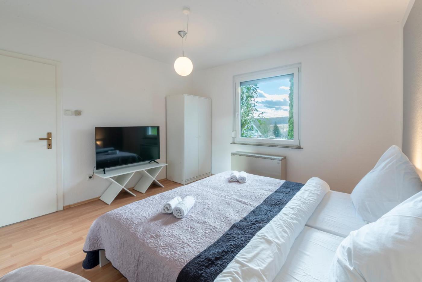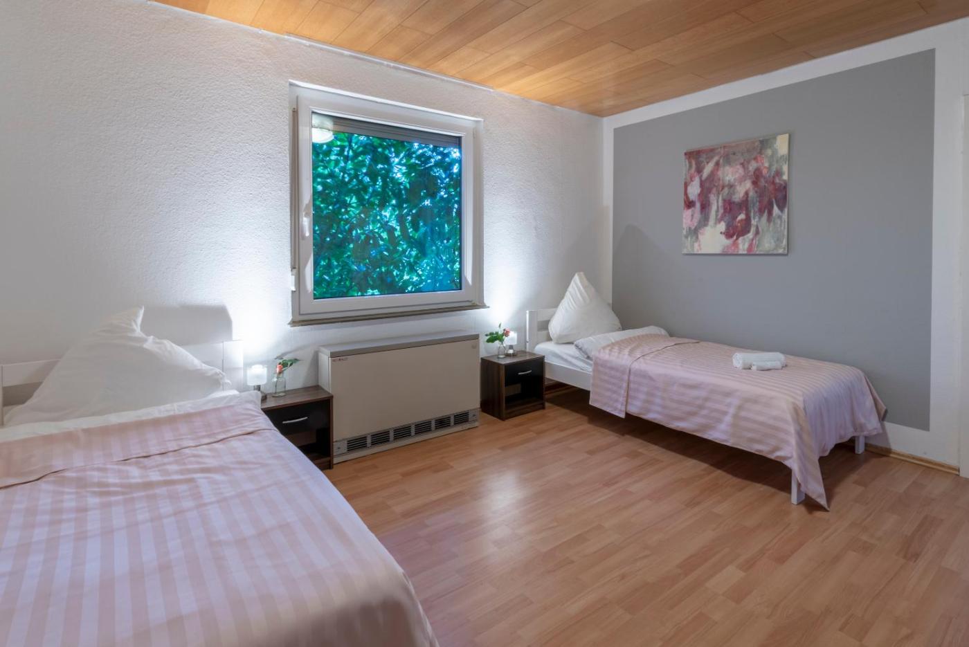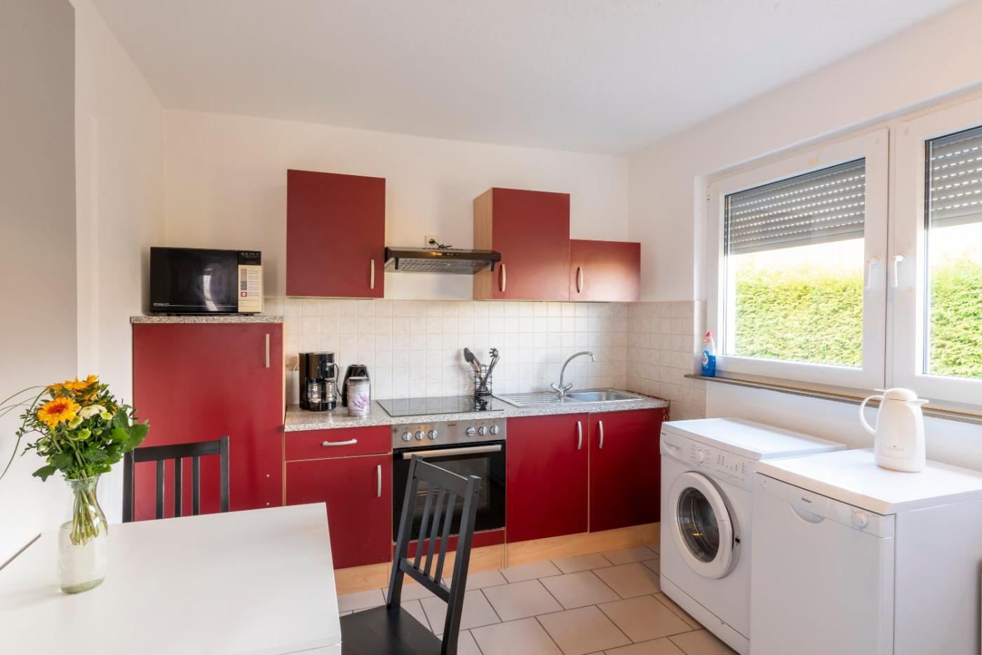 Apartment mit 3 Schlafzimmern. Die Ferienwohnung verfügt über 3 Schlafzimmer, 1 Bad und eine Küche. In der Küche der Ferienwohnung können Sie sich eigene Mahlzeiten zubereiten und Lebensmittel aufbewahren. Weitere Einrichtungen der Ferienwohnung sind eine Terrasse mit Gartenblick, eine Waschmaschine und ein Flachbild-TV. In der Wohneinheit erwarten Sie 6 Betten.