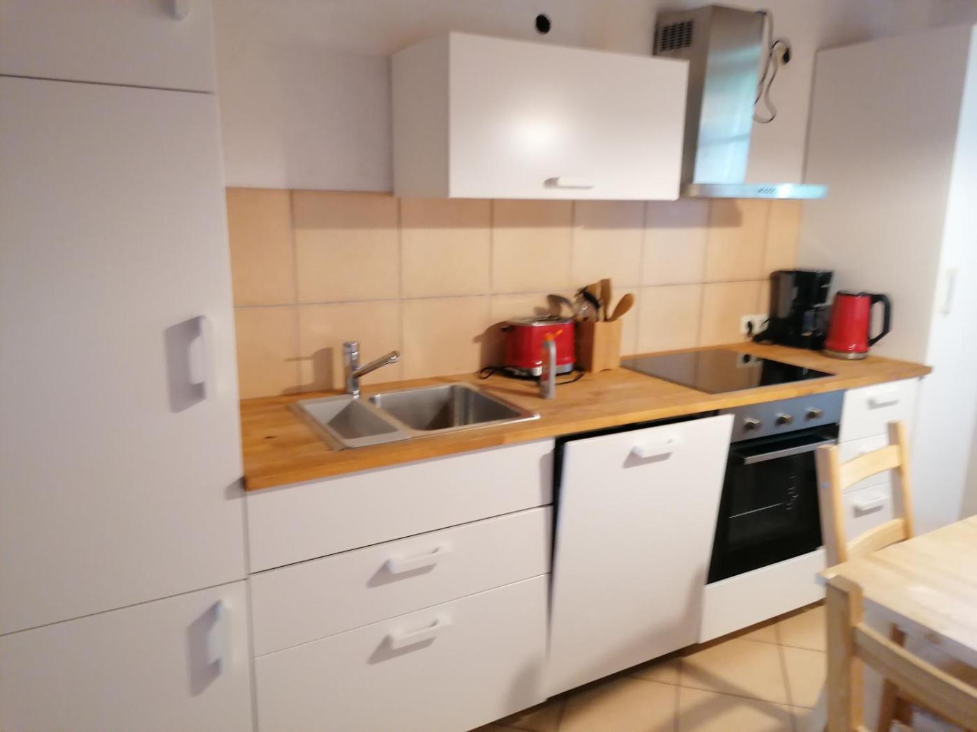 In jeder Wohneinheit gibt es ein Schlafsofa, einen Sitzbereich, einen Flachbild-TV mit Satellitenkanälen, eine gut ausgestattete Küche sowie ein eigenes Badezimmer mit einer Dusche und einer Badewanne. Es gibt einen Kühlschrank, einen Geschirrspüler und einen Ofen sowie eine Kaffeemaschine und einen Wasserkocher.