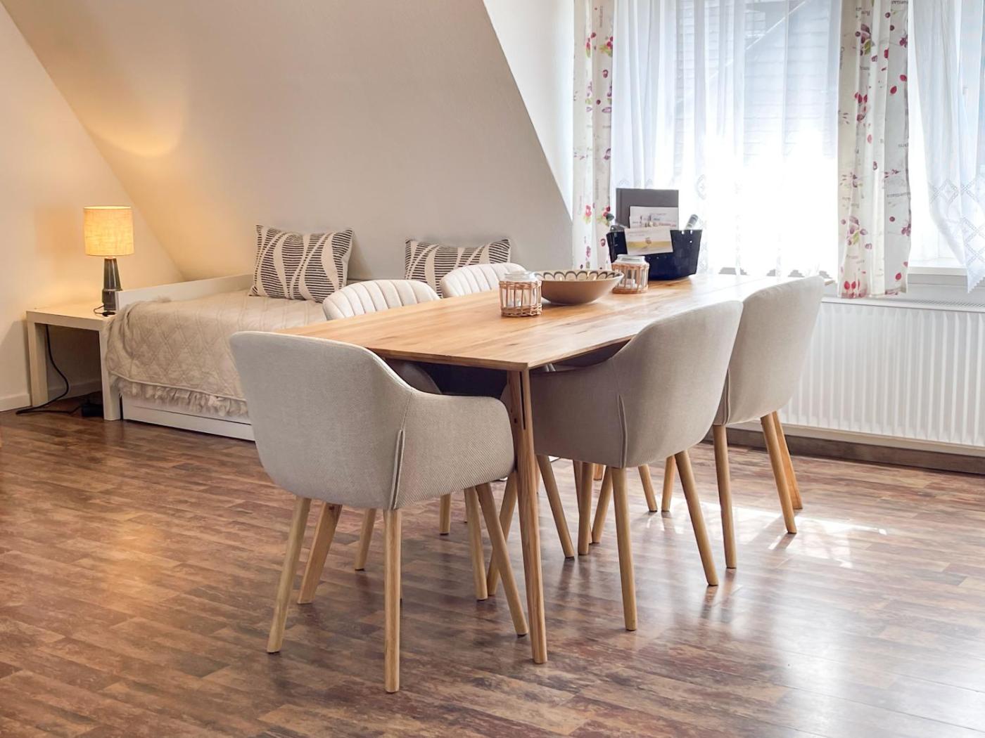 Apartment - auf 2 Etagen. This spacious apartment includes 1 living room, 1 separate bedroom and 1 bathroom with a shower. Meals can be prepared in the well-fitted kitchen, which has a stovetop, a refrigerator, a dishwasher and kitchenware. The apartment offers a washing machine, a coffee machine, a seating area, a wardrobe and a flat-screen TV. The unit has 3 beds.