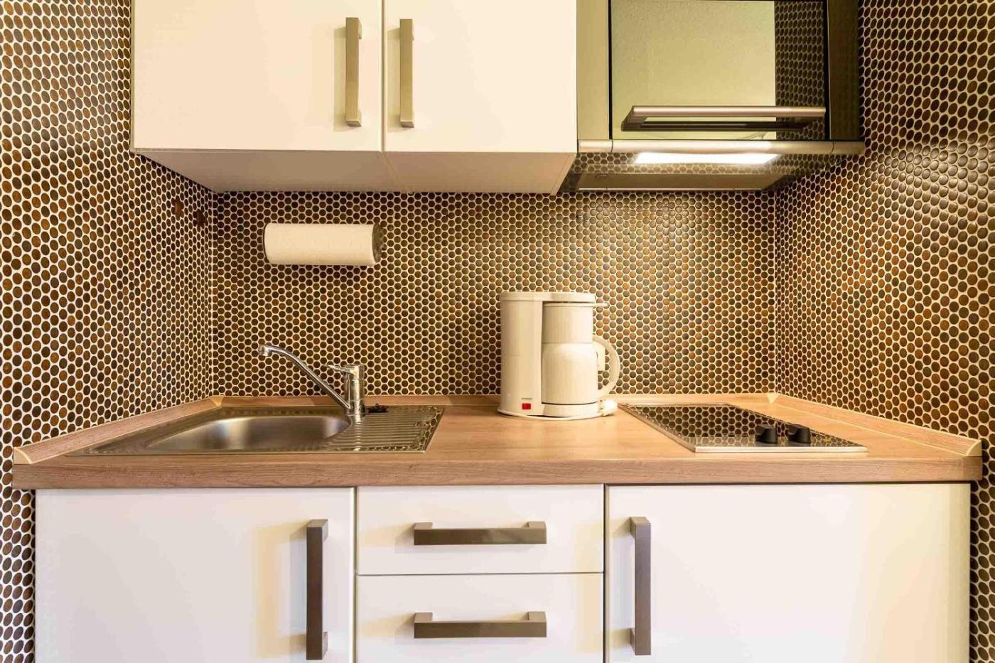 Apartment mit Terrasse. Featuring 1 bedroom, this apartment offers 1 bathroom with a shower, a seating area and terraceyou can relax. The fully equipped kitchen features a stovetop, a refrigerator, kitchenware and a toaster. The apartment provides a coffee machine, a sofa, heating and a TV. The unit has 1 bed.