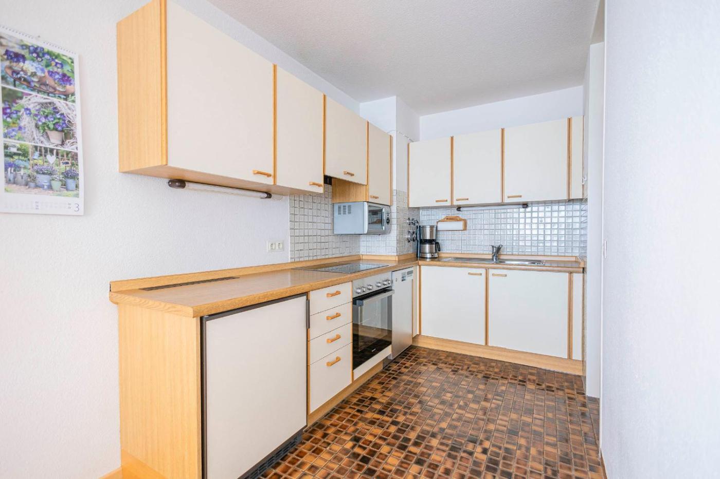 Apartment mit Balkon. This apartment consists of 1 bedroom, a seating area with a sofa and 1 bathroom with a shower. In the fully equipped kitchen, guests will find a stovetop, a refrigerator, a dishwasher and kitchenware. This apartment features a coffee machine, a carpeted floor, a TV and a balcony. The unit offers 1 bed.