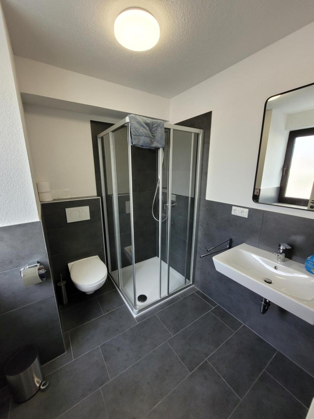 Zweibettzimmer mit Gemeinschaftsbad. Meals can be prepared in the well-fitted kitchen, which is equipped with a stovetop, a refrigerator, kitchenware and an oven. A seating area with a flat-screen TV, a desk, a terrace and a shared bathroom are provided in this twin room. The unit offers 2 beds. ;