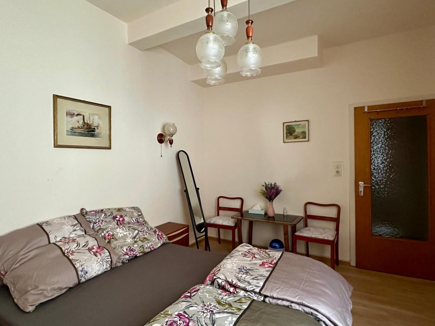 Doppelzimmer mit Gemeinschafts-WC. Featuring free toiletries, this double room includes a shared bathroom with a shower and a hairdryer. The double room has parquet floors, a seating area, soundproof walls, a dining area as well as ancourtyard view. The unit has 1 bed.