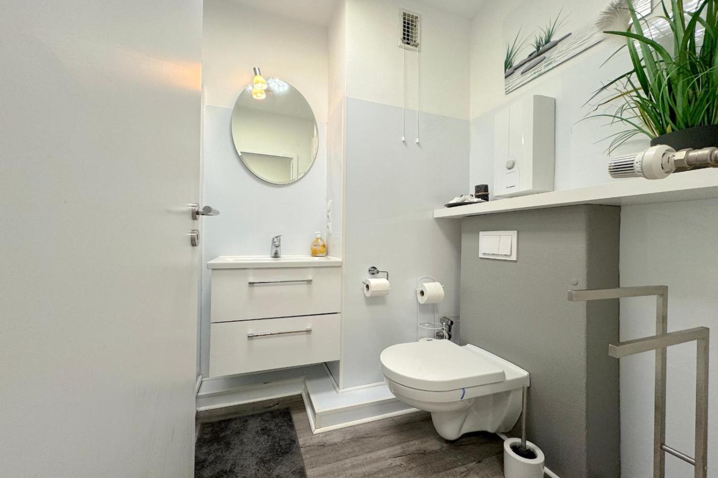 Apartment mit Balkon. This apartment consists of a kitchen, a seating area, 1 separate bedroom and 1 bathroom with a shower and a hairdryer. The fully equipped kitchen features a stovetop, a refrigerator, a dishwasher and kitchenware. Featuring a balcony, this apartment also provides a coffee machine, a wardrobe and a flat-screen TV. The unit offers 1 bed.
