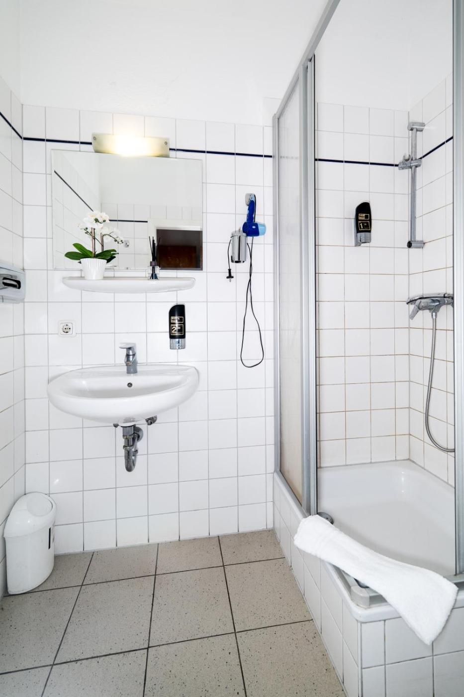 Zweibettzimmer mit Dusche. A seating area with a flat-screen TV, a desk and a private bathroom are featured in this twin room. The unit offers 1 bed. ;