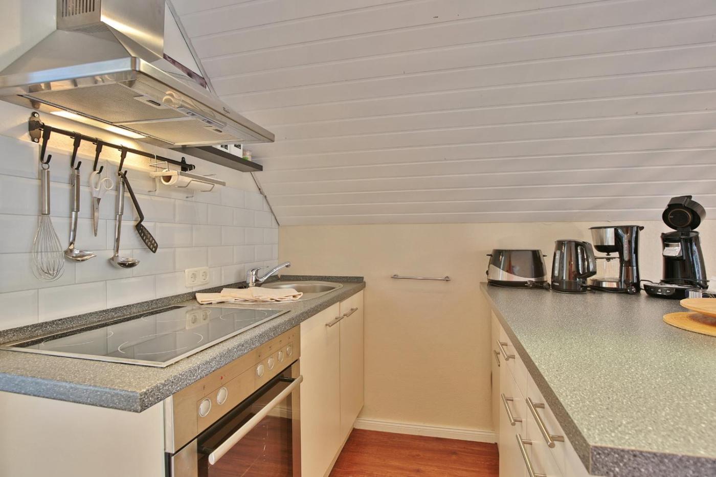 Apartment mit Balkon. This spacious apartment includes 2 bedrooms, a kitchen and 1 bathroom with a shower and a hairdryer. Guests can make meals in the kitchen that is fitted with a stovetop, a refrigerator, an oven and a microwave. Boasting a balcony, this apartment also offers a coffee machine, a wardrobe and a TV. The unit has 3 beds.