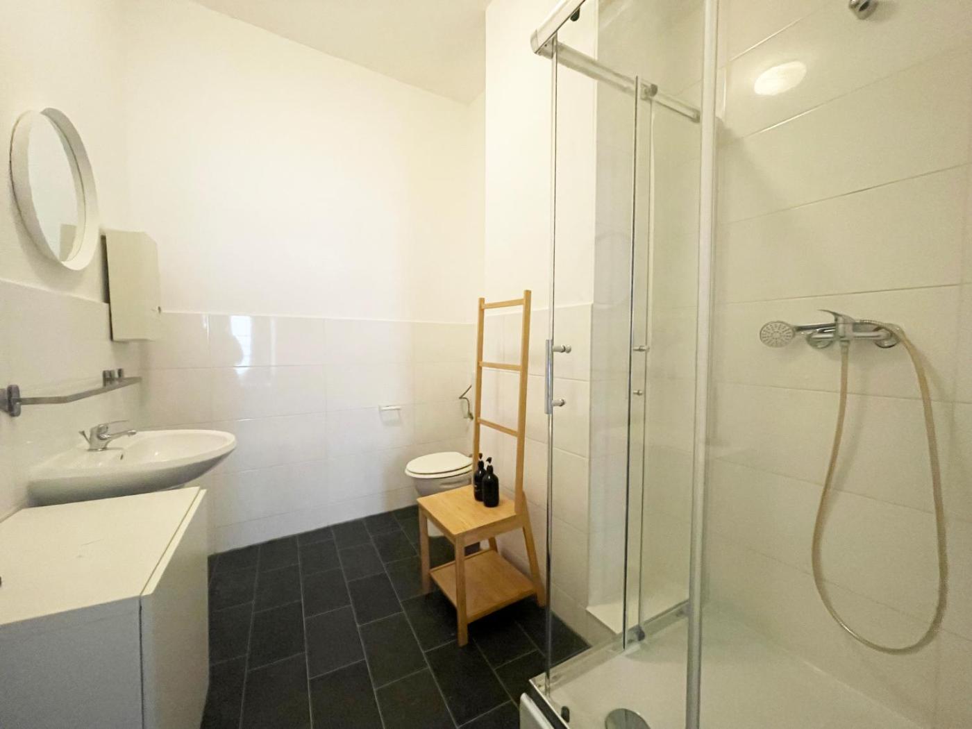 Die Unterkunft Charmantes Studio-Apartment in der Altstadt Koblenz bietet einen Sitzbereich mit einem Flachbild-TV sowie ein eigenes Badezimmer mit einem Haartrockner und einer Dusche.