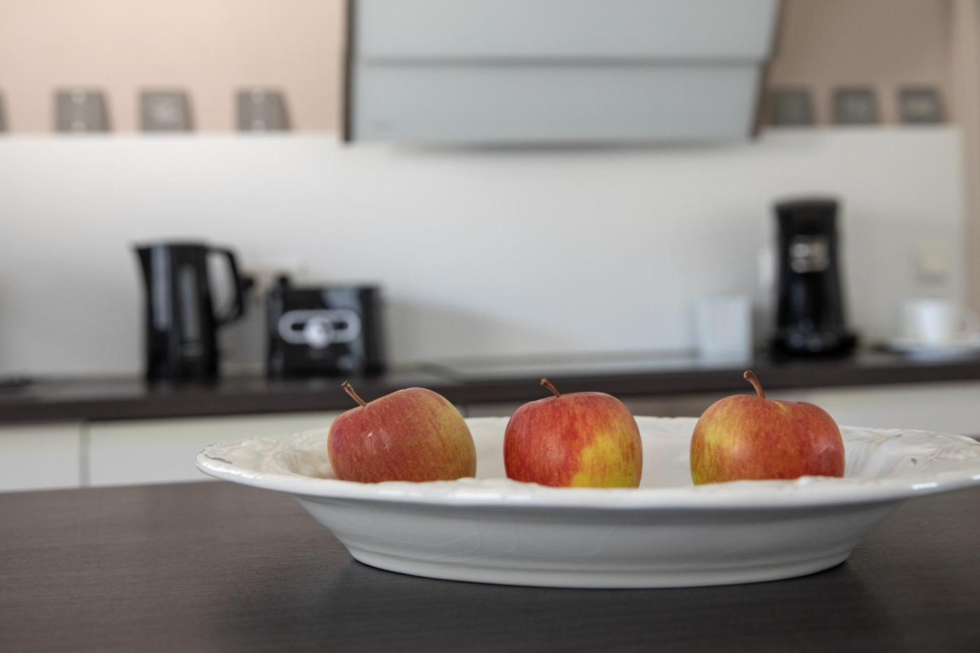 In jeder Wohneinheit gibt es eine voll ausgestattete Küche mit einem Esstisch, einen Flachbild-TV mit Satellitenkanälen sowie ein eigenes Badezimmer mit einer Dusche und einem Haartrockner. Es gibt einen Kühlschrank, einen Geschirrspüler und einen Ofen sowie eine Kaffeemaschine und einen Wasserkocher.