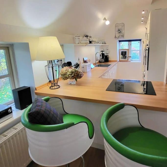 Dieses Ferienhaus mit einer Terrasse und Gartenblick bietet 2 Schlafzimmer, ein Wohnzimmer, einen Flachbild-TV, eine gut ausgestattete Küche mit einem Kühlschrank und einem Geschirrspüler sowie 1 Badezimmer mit einer Dusche. In diesem Ferienhaus werden Handtücher und Bettwäsche angeboten.