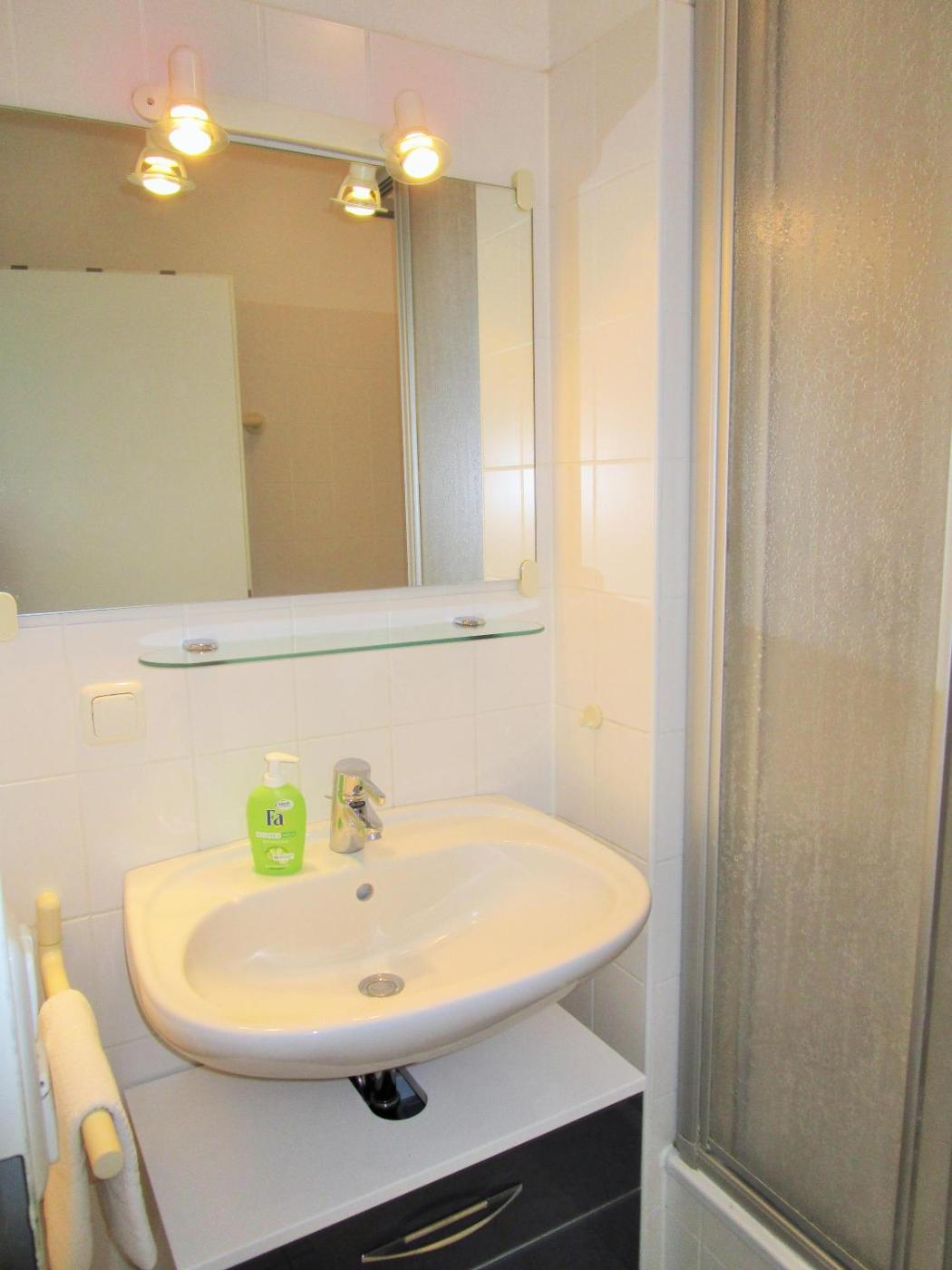 Apartment mit Balkon. This apartment comes with 1 bedroom, a seating area with a sofa and 1 bathroom with a shower. The fully equipped kitchen has a stovetop, a refrigerator, kitchenware and an oven. This apartment features a coffee machine, a wardrobe, a TV and a balcony. The unit has 1 bed.