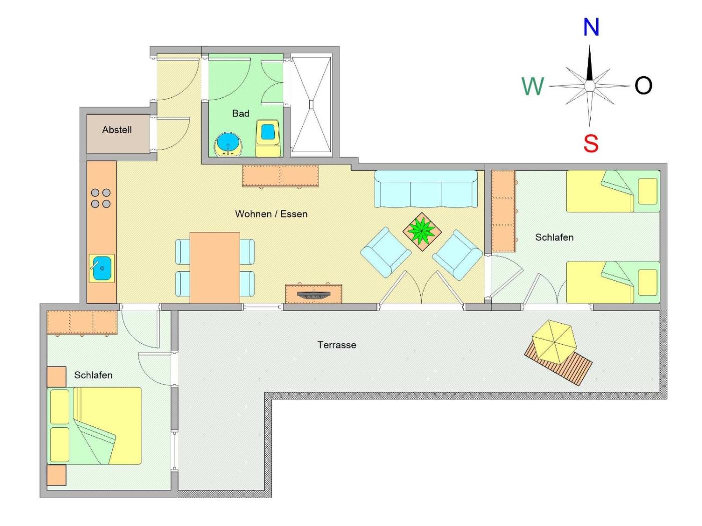 Apartment mit Terrasse. Guests will have a special experience as this apartment features a sauna. Featuring 2 bedrooms, this spacious apartment offers 1 bathroom with a shower, a seating area and terraceyou can relax. Meals can be prepared in the well-fitted kitchen, which comes with a stovetop, a refrigerator, a dishwasher and kitchenware. Boasting an outdoor dining area, this apartment also offers a washing machine, a coffee machine and a TV. The unit has 3 beds.