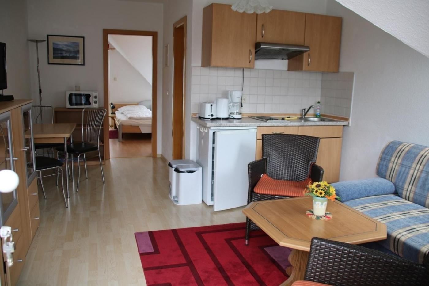 Apartment. This apartment is comprised of 1 living room, 1 separate bedroom and 1 bathroom with a shower. In the well-equipped kitchen, guests will find a stovetop, a refrigerator, a microwave and a toaster. Featuring a balcony, this apartment also offers a coffee machine, heating and a TV. The unit offers 2 beds.