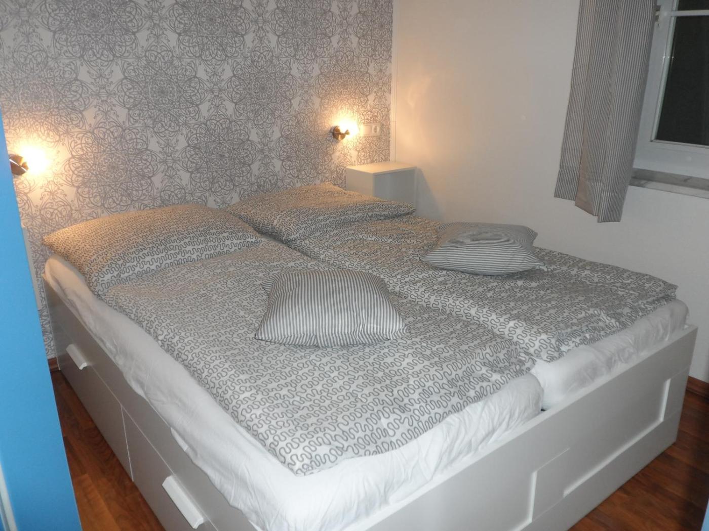 Apartment - Erdgeschoss. Dieses Apartment wurde im Jahre 2017 renoviert und verfügt über ein Schlafzimmer mit einem Doppelbett sowie einen Flachbild-TV mit einem DVD-Player. Die Küchenzeile ist mit einem Kochfeld ausgestattet.