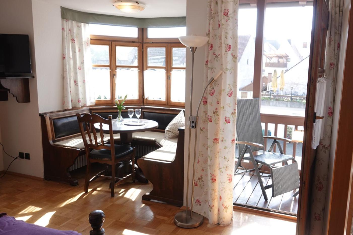 Alle Zimmer im Hotel Adler sind komfortabel im traditionellen Landhausstil eingerichtet und verfügen über Kabel-TV, ein Radio, ein Sofa und ein eigenes Bad. Einige Zimmer bieten zudem einen Balkon und eine Nische.