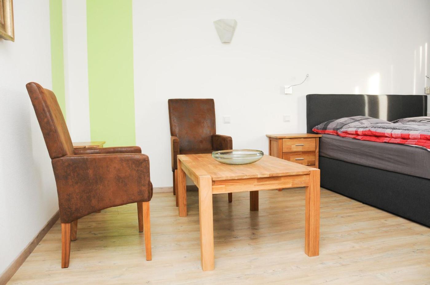 Apartment - Erdgeschoss. Featuring a private entrance, this apartment also consists of 1 bedroom, a seating area and 1 bathroom with a shower and a hairdryer. Meals can be prepared in the kitchen, which is equipped with a stovetop, a refrigerator, kitchenware and a microwave. The apartment provides a flat-screen TV with satellite channels, a washing machine, soundproof walls, a coffee machine as well as a quiet street view. The unit offers 2 beds. ;