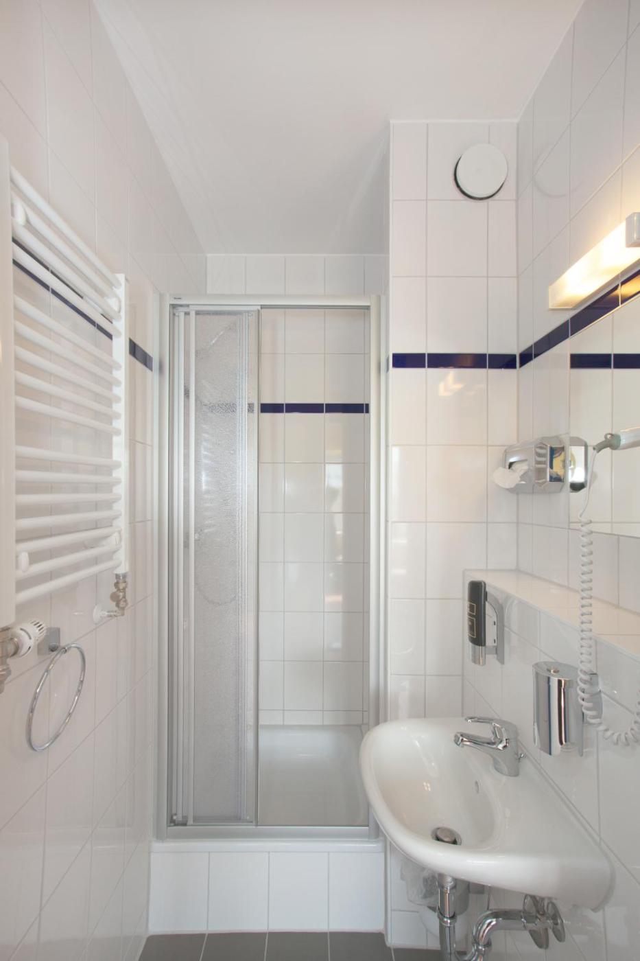 Einzelzimmer. Modernes Zimmer mit Laminatboden, einem TV und einem eigenen Bad mit einem Haartrockner. ;